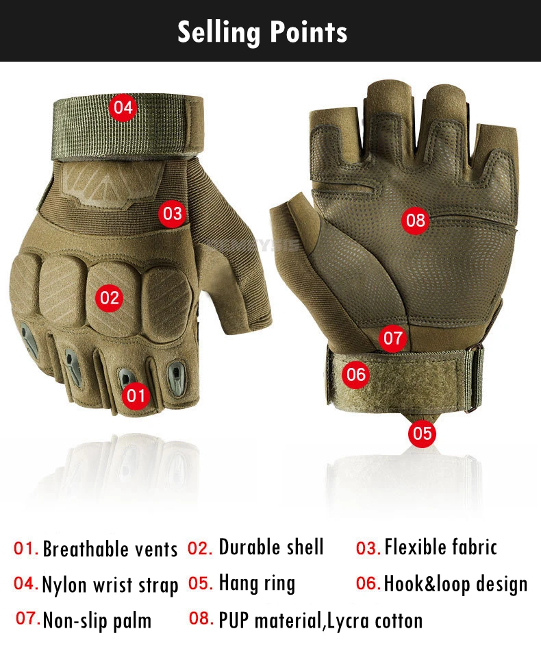 ●MHecho de nylon de alta calidad y Lycra algodón, material PUP.El dorso de la mano está engrosado con almohadillas Para proporcionar más protección.