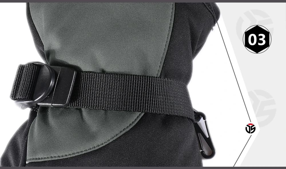 La hebilla ajustable evita eficazmente que el viento o la nieve entren en el interior. La hebilla portátil anti-pérdida hace que sus guantes no sean fáciles de soltar, fácil de almacenar en un conjunto completo, conveniente de llevar.