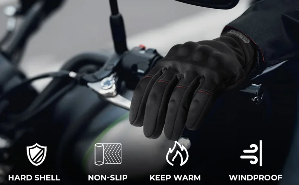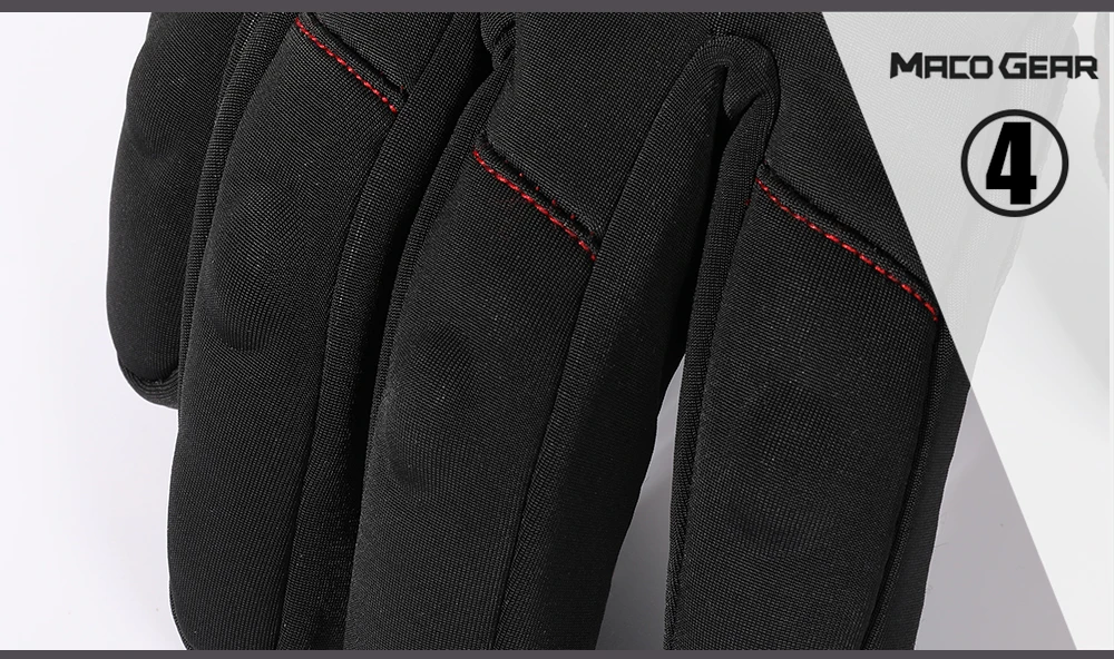 La superficie de los guantes está adoptada con material de poliéster resistente al viento y a las salpicaduras (no impermeable), puede mantener las manos secas y calientes.