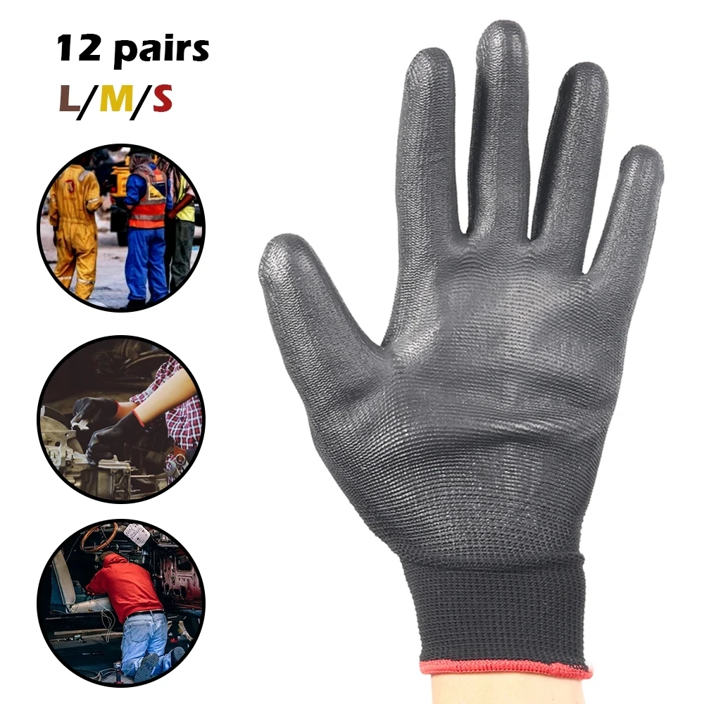 12 pares de guantes de trabajo recubiertos de PU