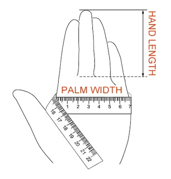 2. Los valores de datos de medición para guantes sin estiramiento, cada estilo de guantes tiene un grado diferente de estiramiento, luego use una cinta para medir su ancho, luego compare la tabla de tallas para elegir el tamaño apropiado, una ligera desviación, se prefiere el efecto real del desgaste.
