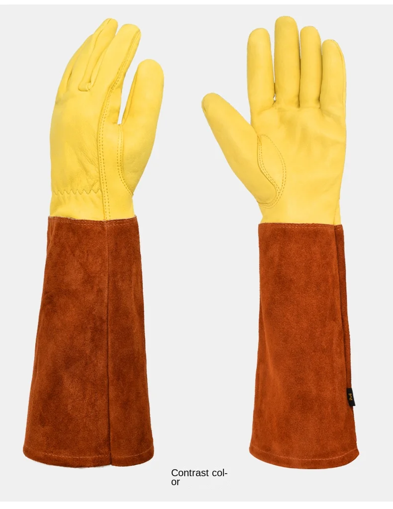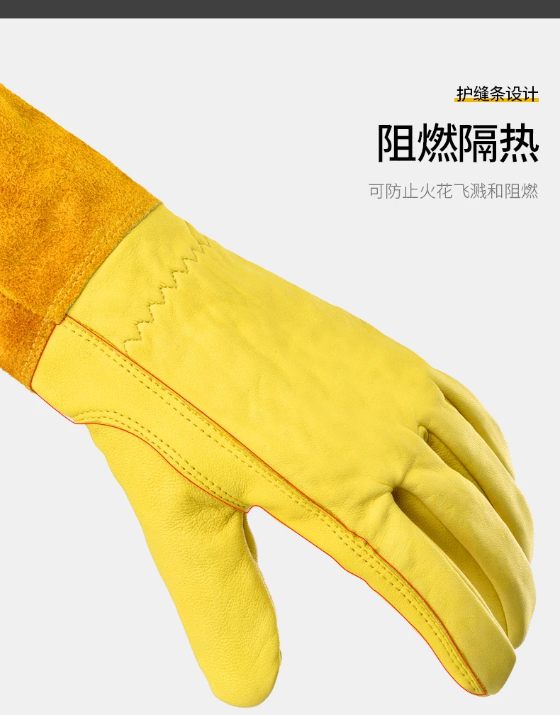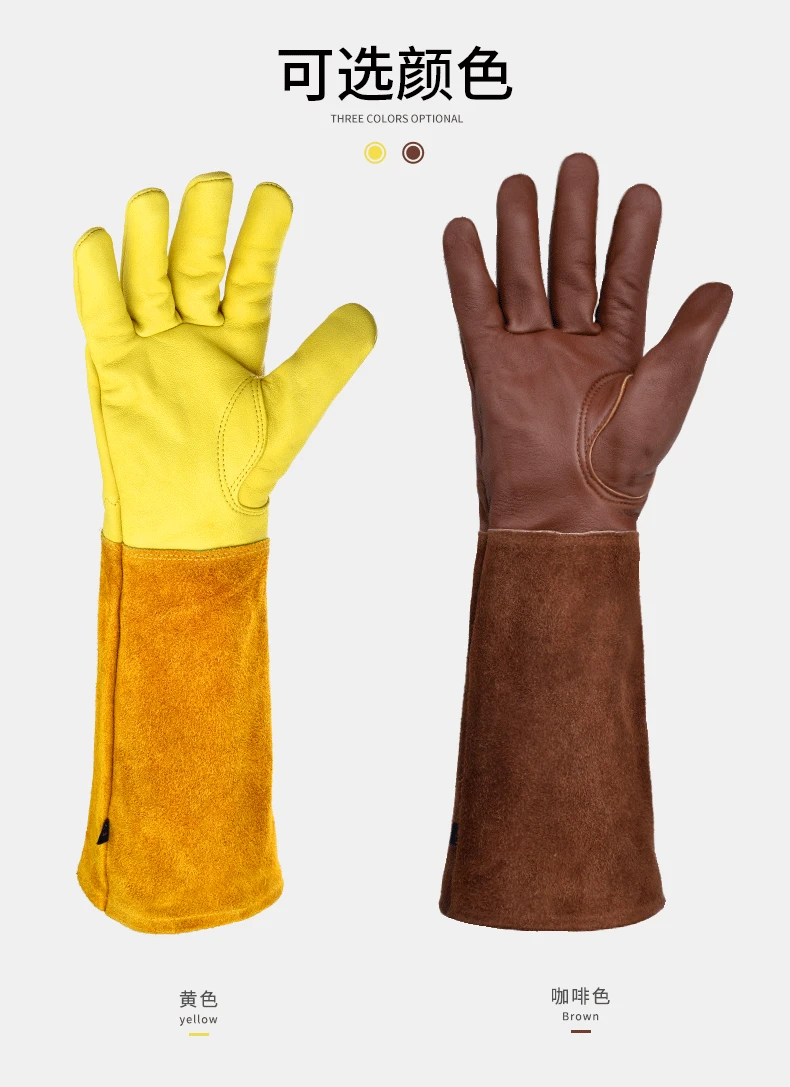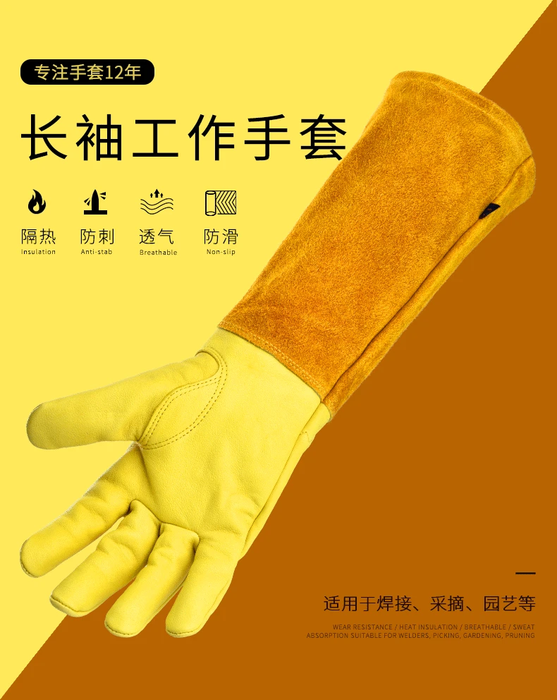 Guantes de tubo largo antideslizantes de cuero de vaca con soldadura transpirable, resistentes al desgaste, antimordedura, guante multifuncional de cuero de trabajo