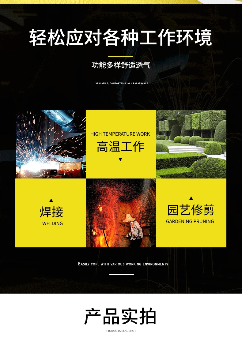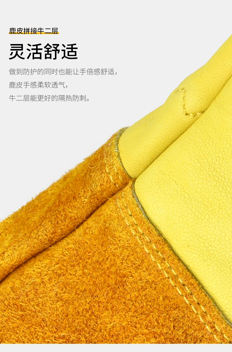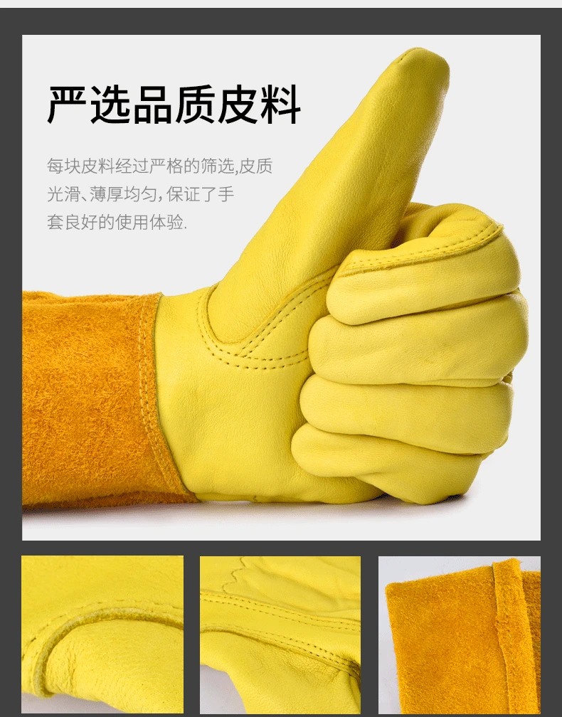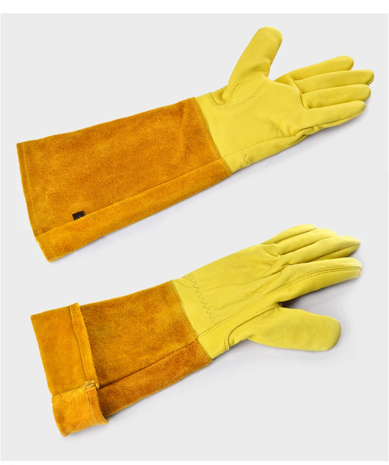 Guantes de tubo largo antideslizantes de cuero de vaca con soldadura transpirable, resistentes al desgaste, antimordedura, guante multifuncional de cuero de trabajo