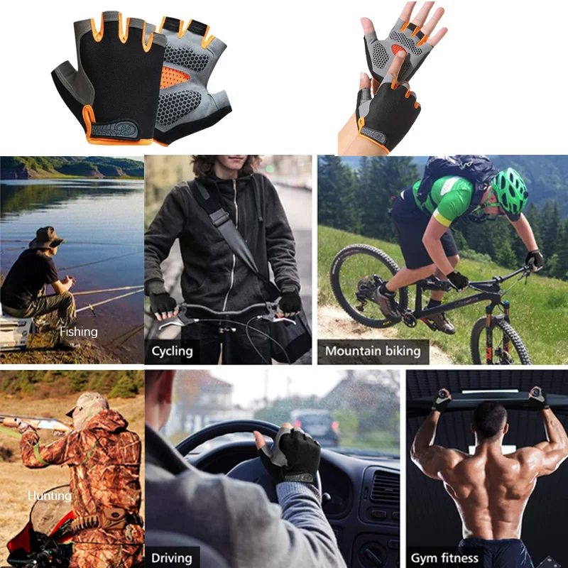 Guantes universales para caza, ciclismo, pesca, medio dedo, MTB, antideslizantes, que absorben los golpes, para Fitness, ciclismo, deportes al aire libre