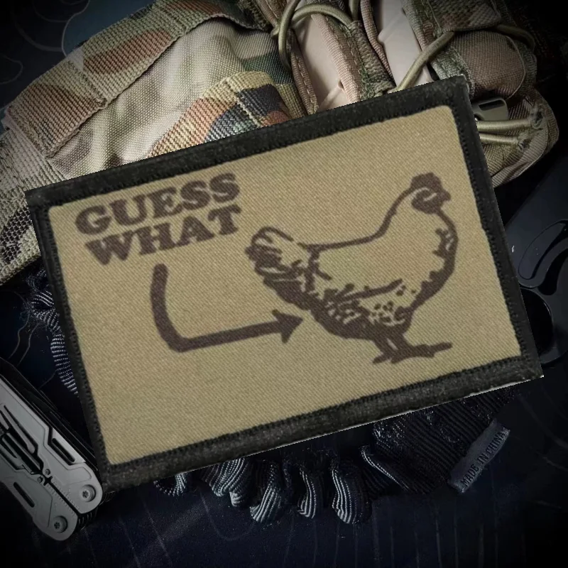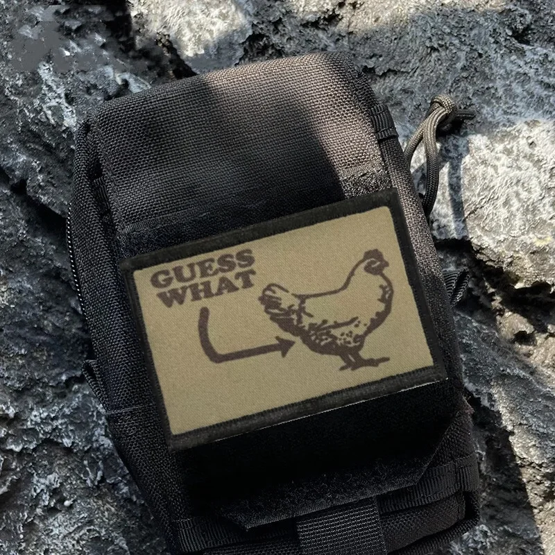 Guess What moral parche táctico divertido, Parche de gancho y bucle impreso de gallina, insignia militar, brazalete, pegatinas tácticas de mochila