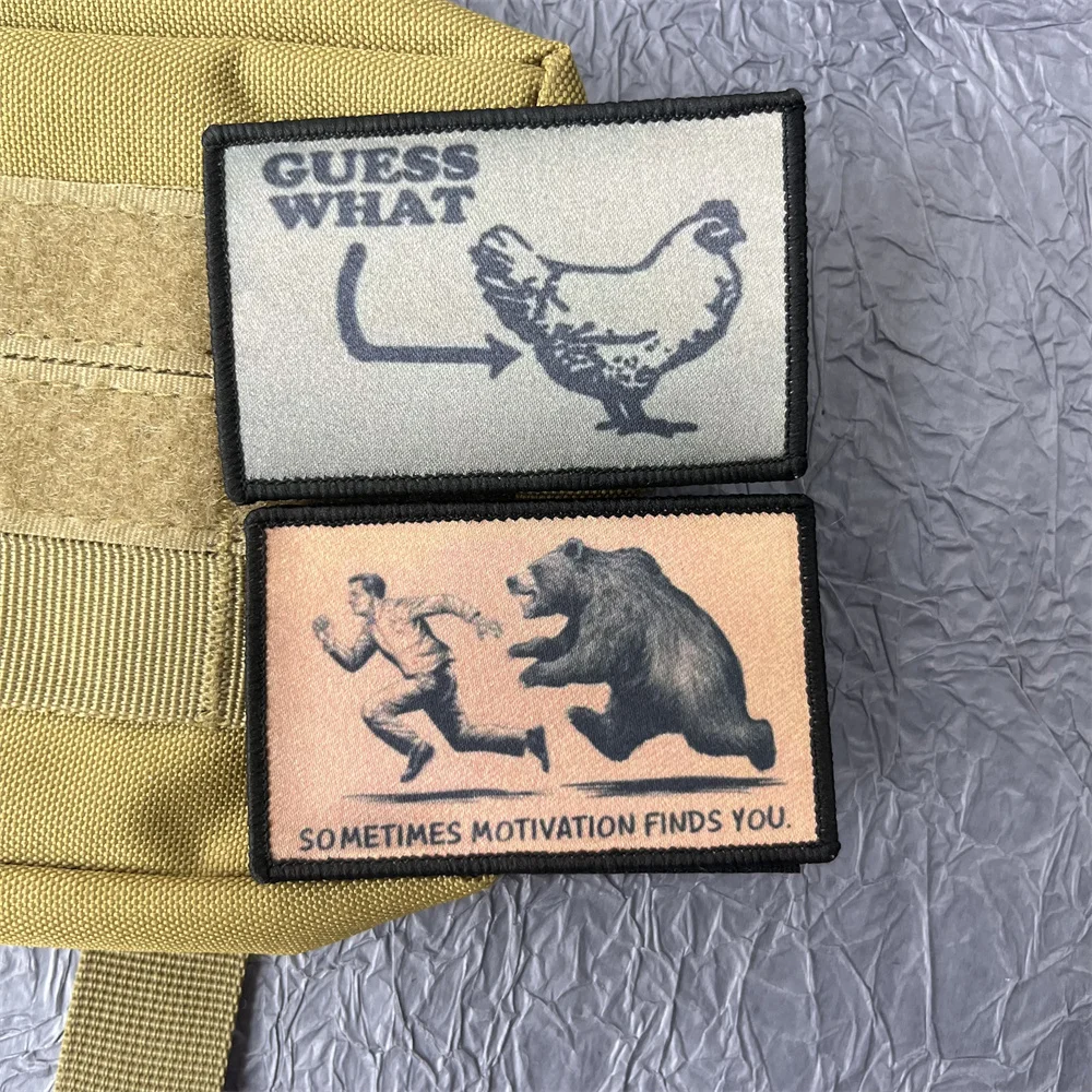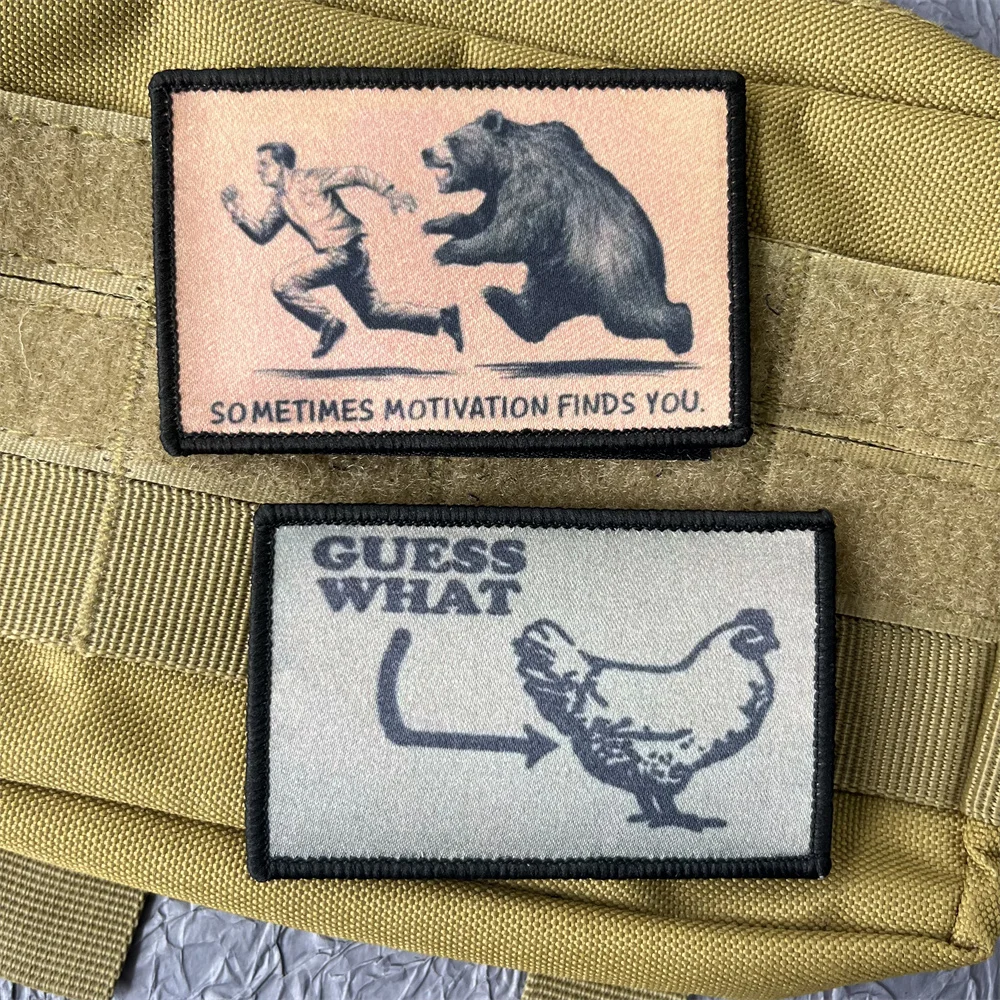 Guess What parches de impresión en la ropa oso moral insignia táctica militar mochila parches apliques de gancho y bucle para la ropa