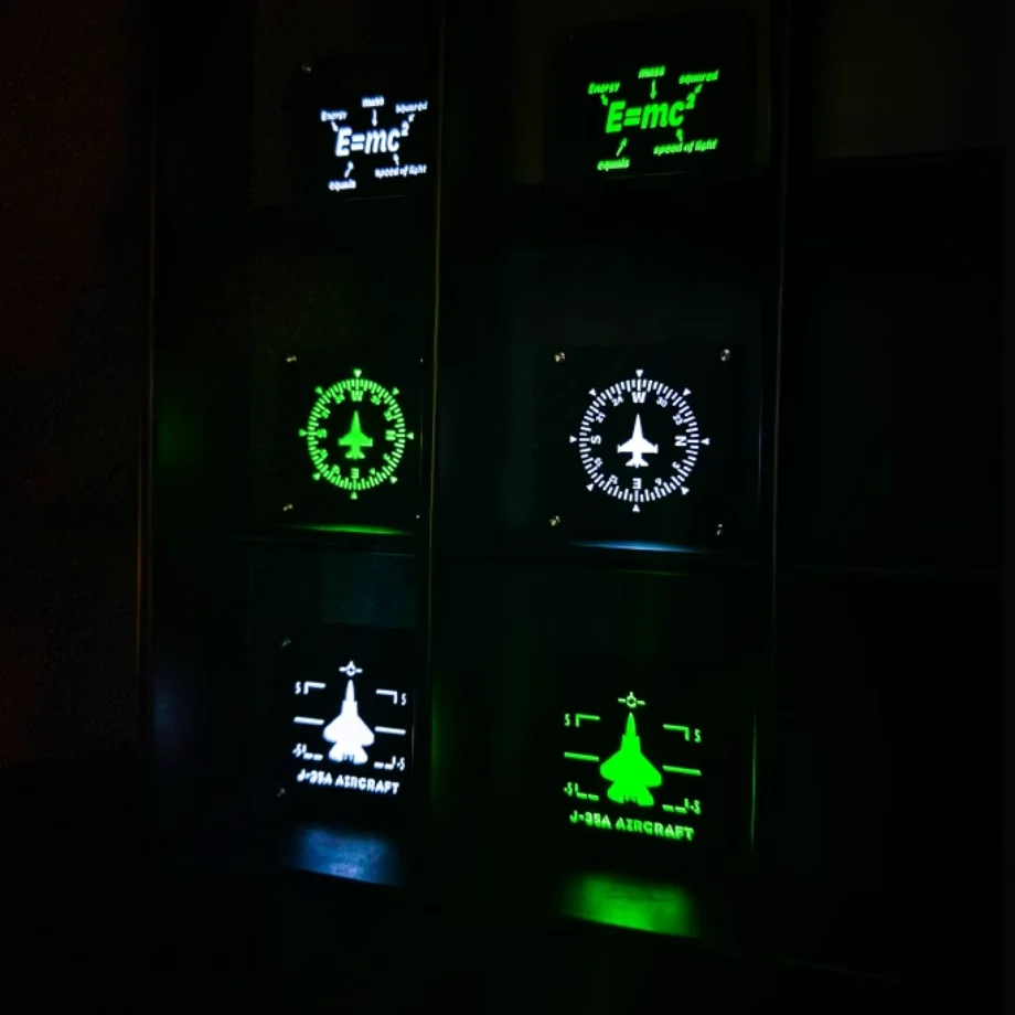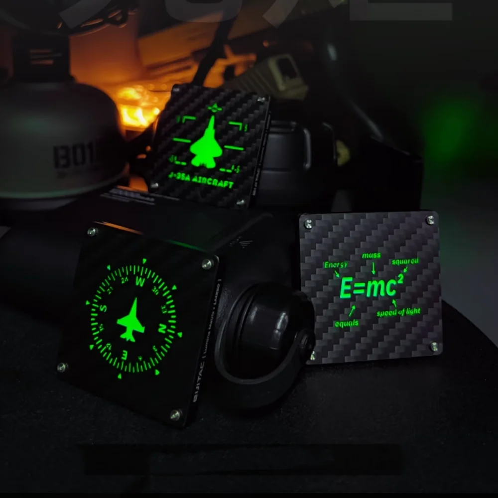 Guía de luz luminosa de Metal, parche de fibra de carbono, insignia táctica de carga, instrumentos de aviones, ecuación de energía masiva, combate J35A