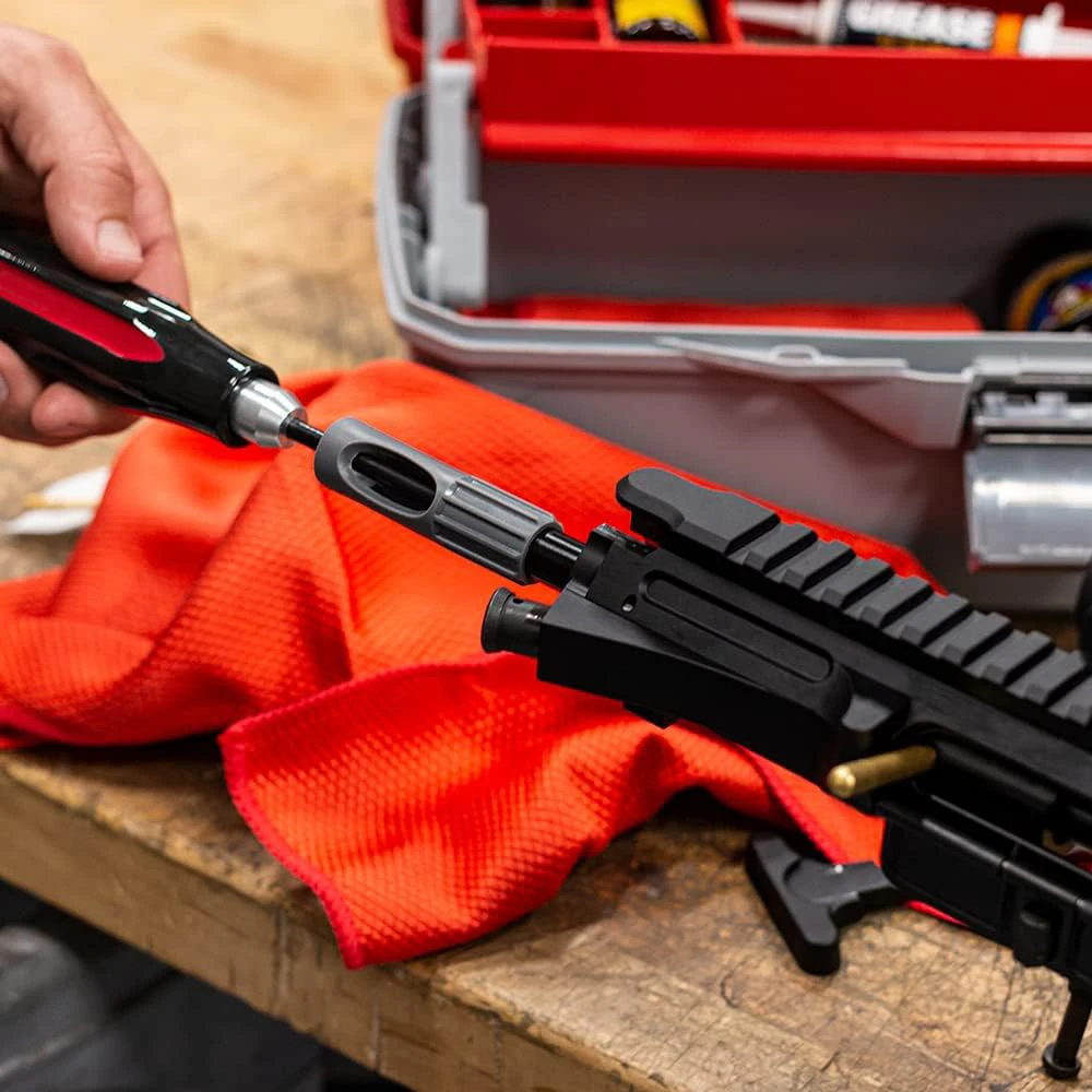 4.Esta guía de orificio universal incluye un collar diseñado para rifles estilo MSR/AR que crea un ajuste más ajustado y soporte adicional del receptor superior mientras limpia su arma de fuego.