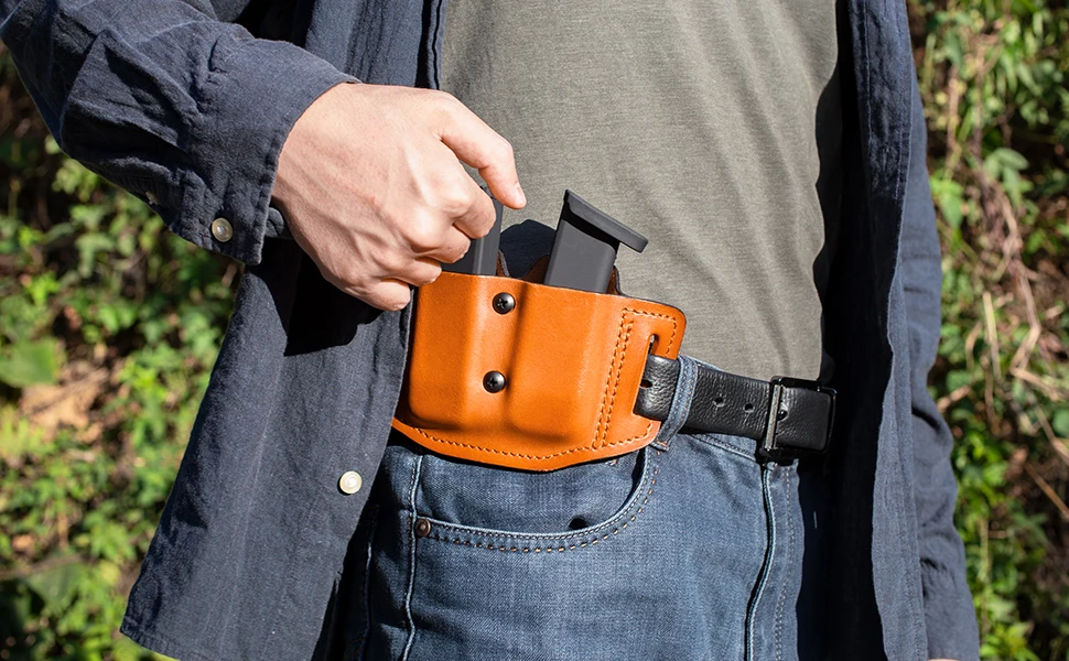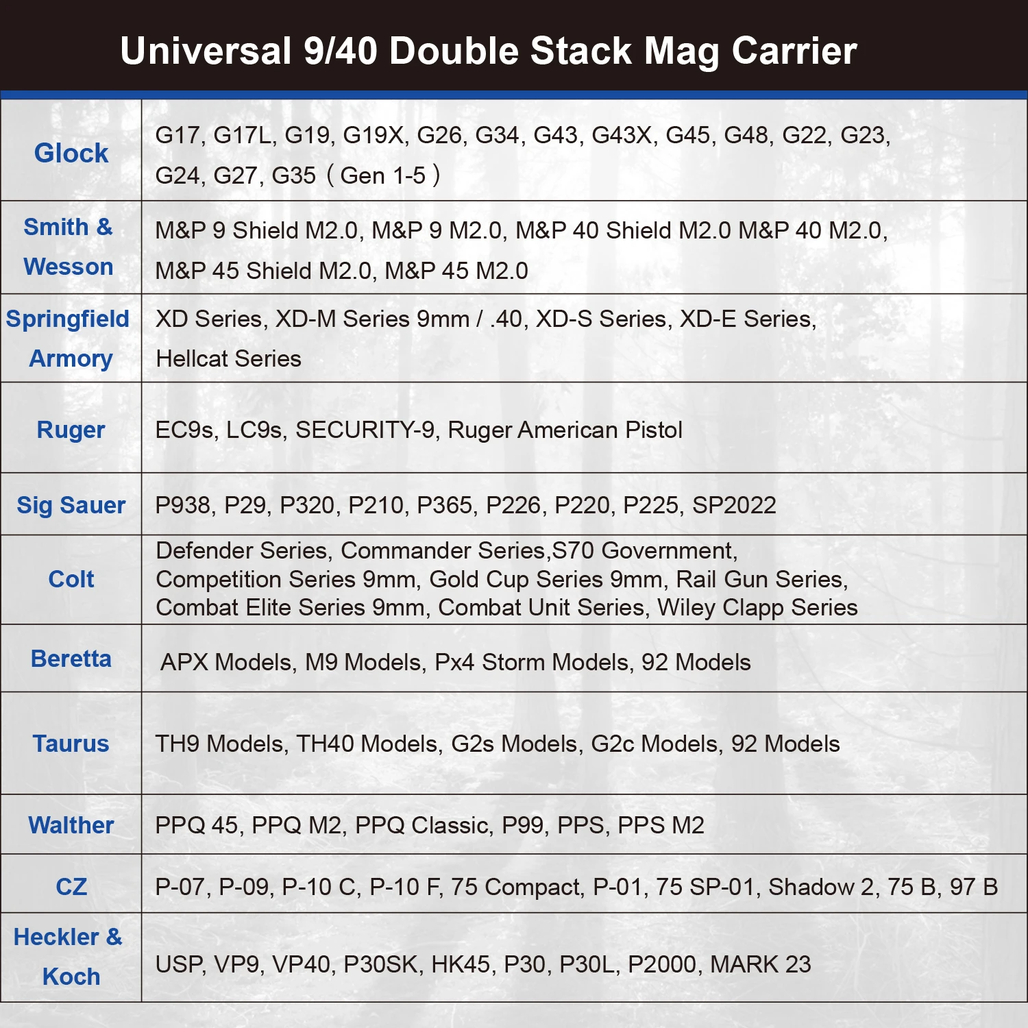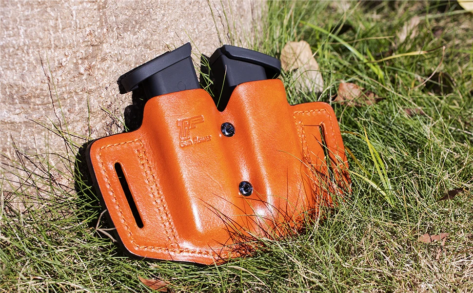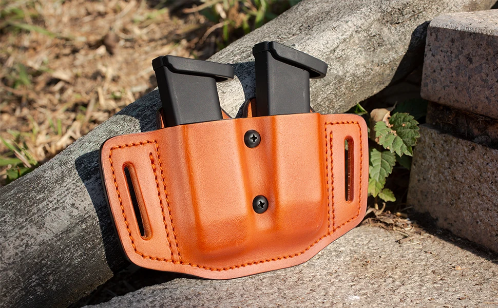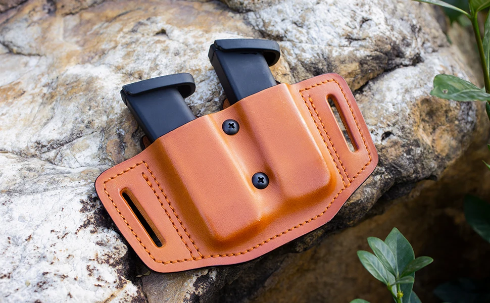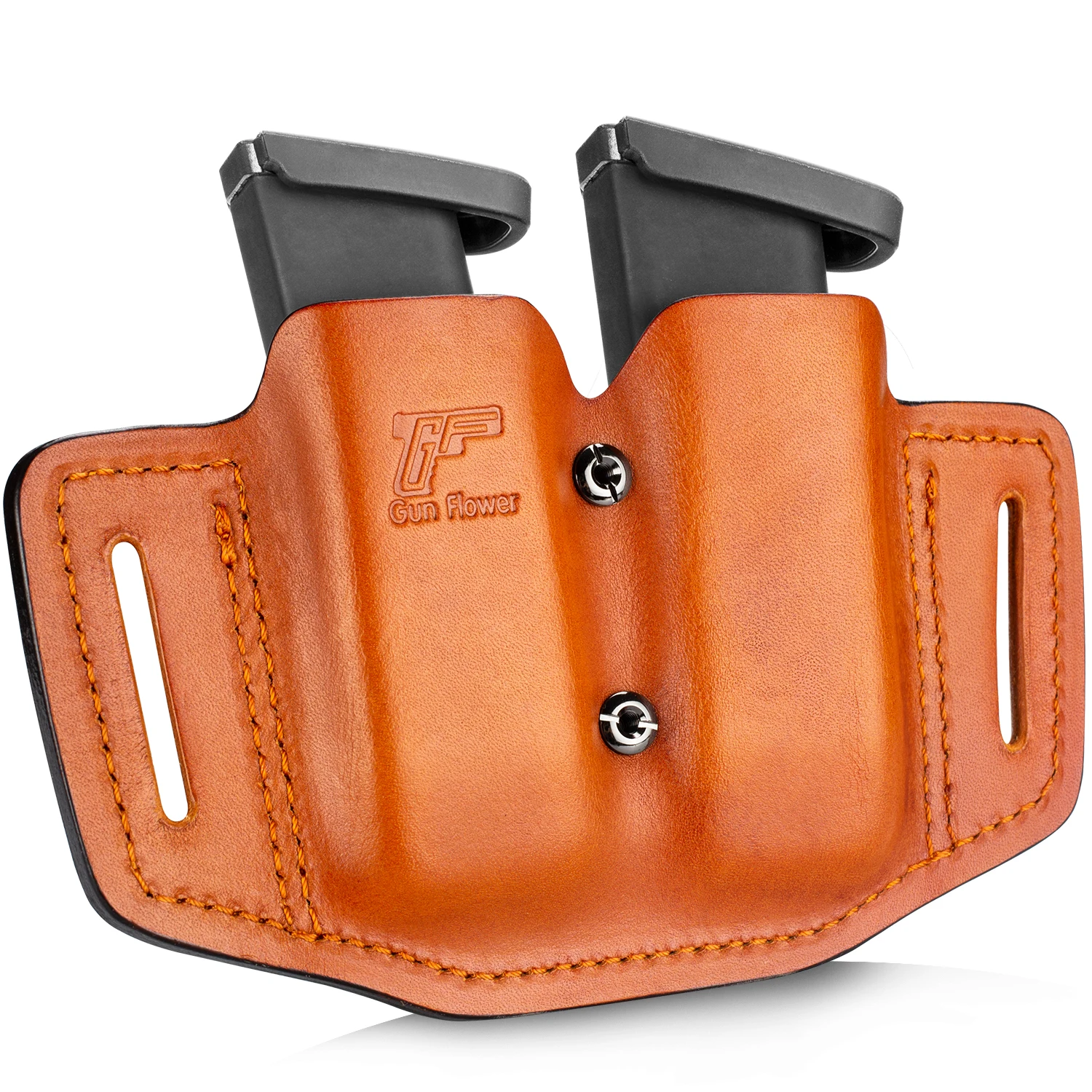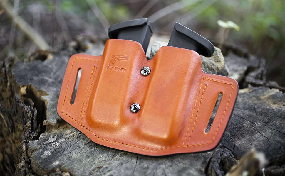 Bolsas para cargadores dobles de pistola y flores de cuero de plena flor, soporte magnético Universal de doble pila 9/40