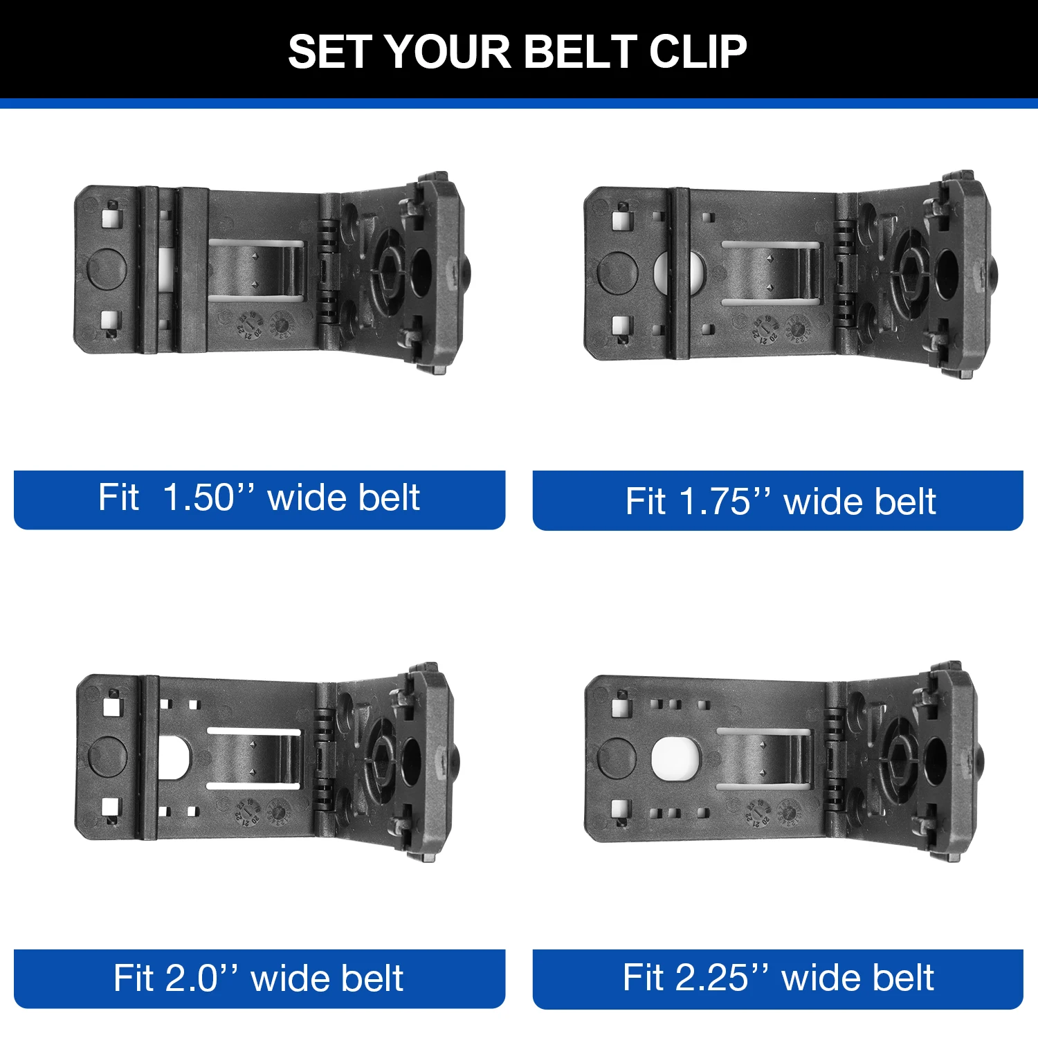 【Ajuste 1,5 1,75 2,0 2,25 pulgadas belt 】 el Clip de cinturón es ajustable para adaptarse a diferentes tamaños de cinturón de 1,5 a 2,25 pulgadas.