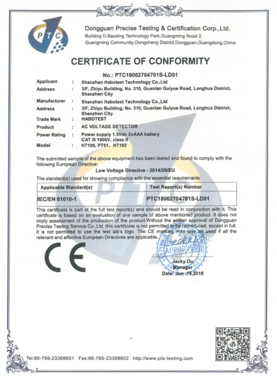 Nivel de seguridad:Clasificación IEC CAT III 1000V CAT IV 600V, cumple con los requisitos de la CE; El probador eléctrico está aislado dos veces con seguridad. Alerta de alto voltaje para avisarte de un voltaje superior a 90V, la pantalla se vuelve roja y el símbolo de seguridad en la pantalla brilla.