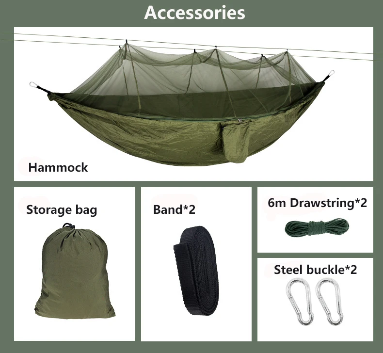 Hamaca al aire libre con mosquitera, cama colgante para acampar, columpio de jardín portátil, silla doble, paracaídas, persona doble