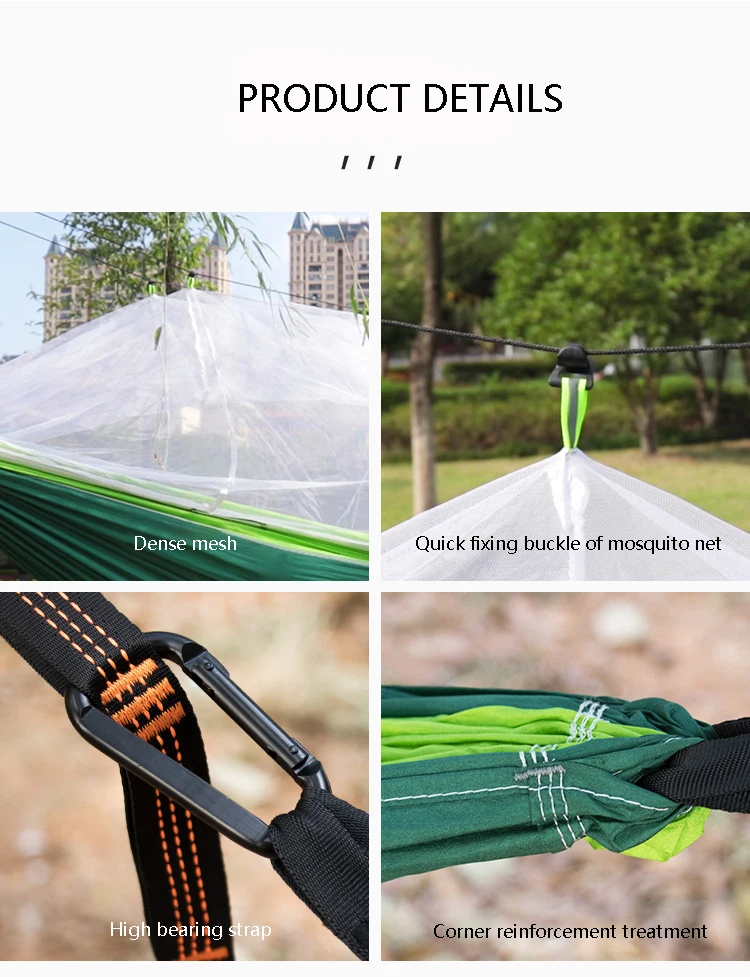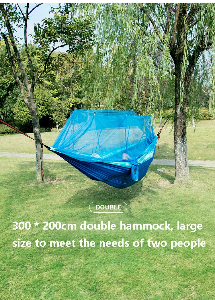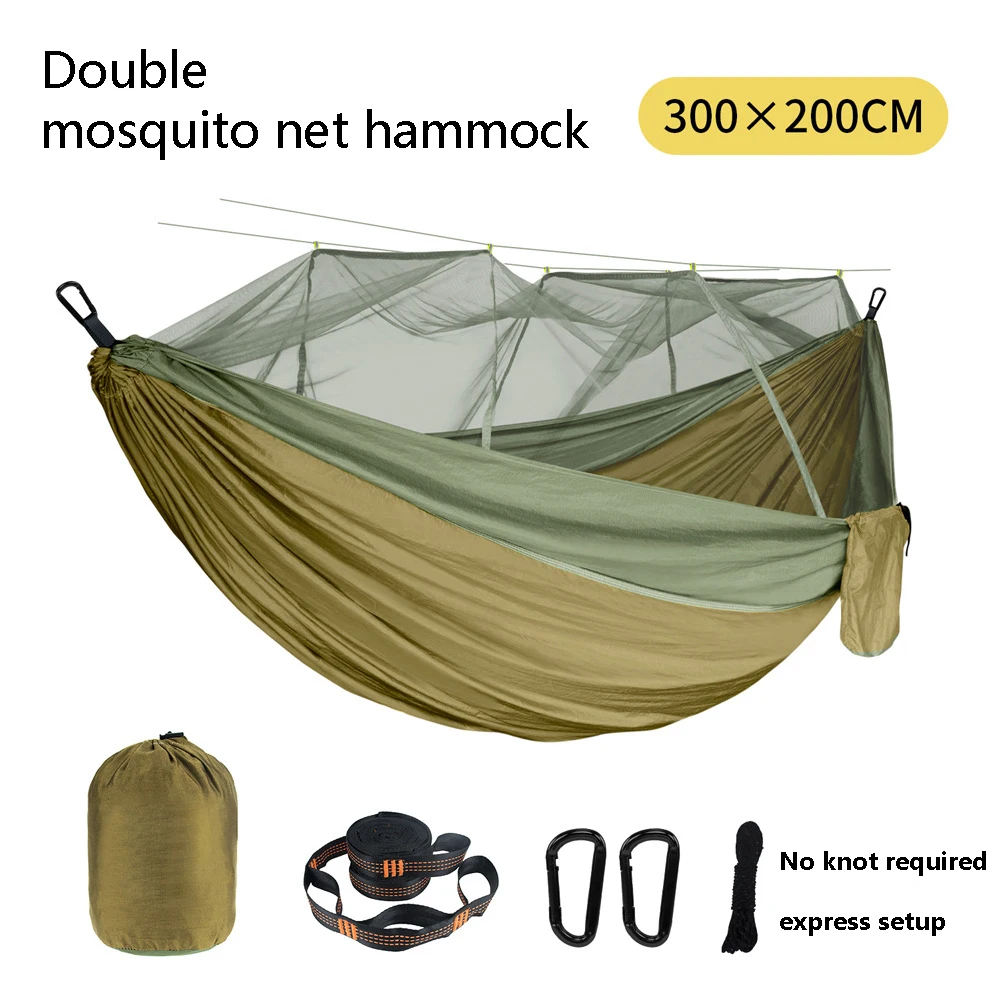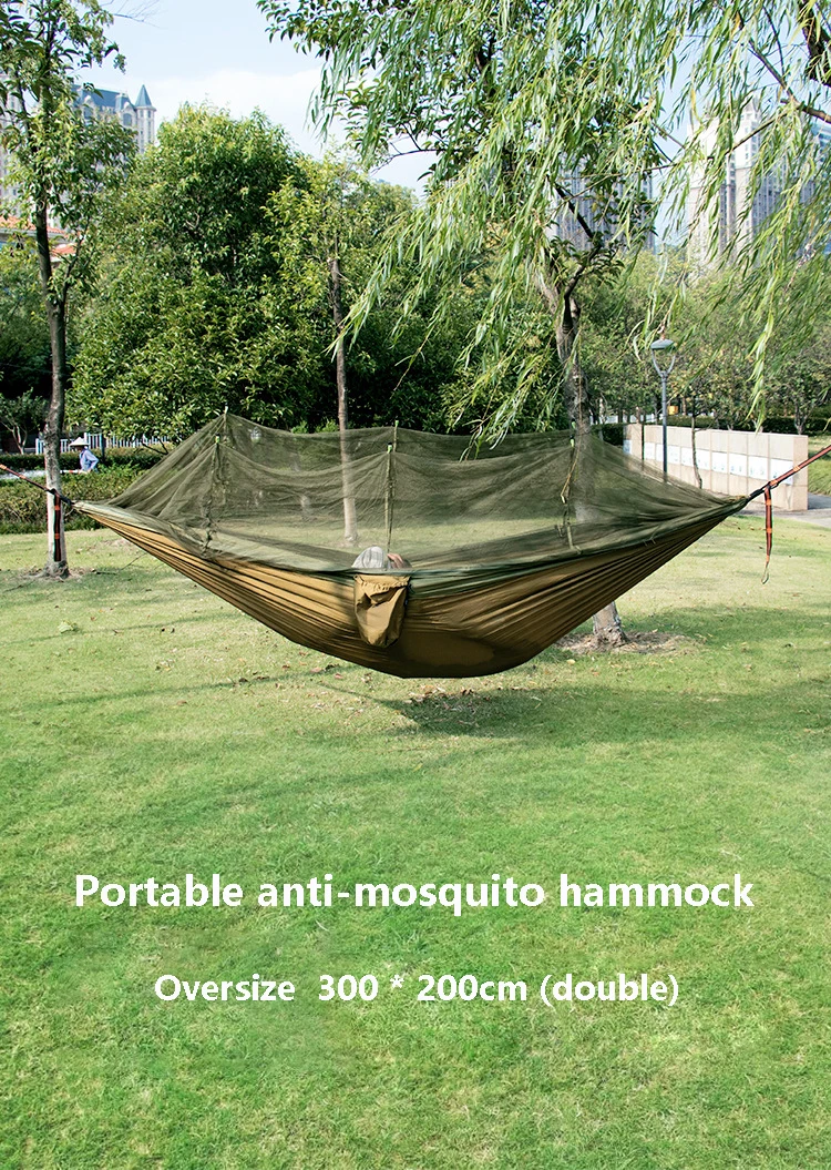Hamaca de mosquitera doble, Camping al aire libre, antivuelco, tela de paraguas de gran tamaño, tela antivuelco, 300 × 200cm