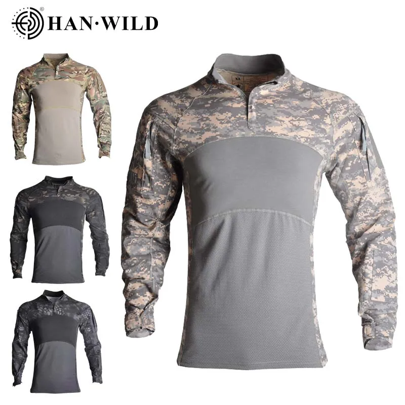 Camiseta de camuflaje HAN WILD para hombre, camiseta de combate de caza de manga larga para senderismo CP, camisetas tácticas para hombre, ropa de Camping Airsoft Paintball