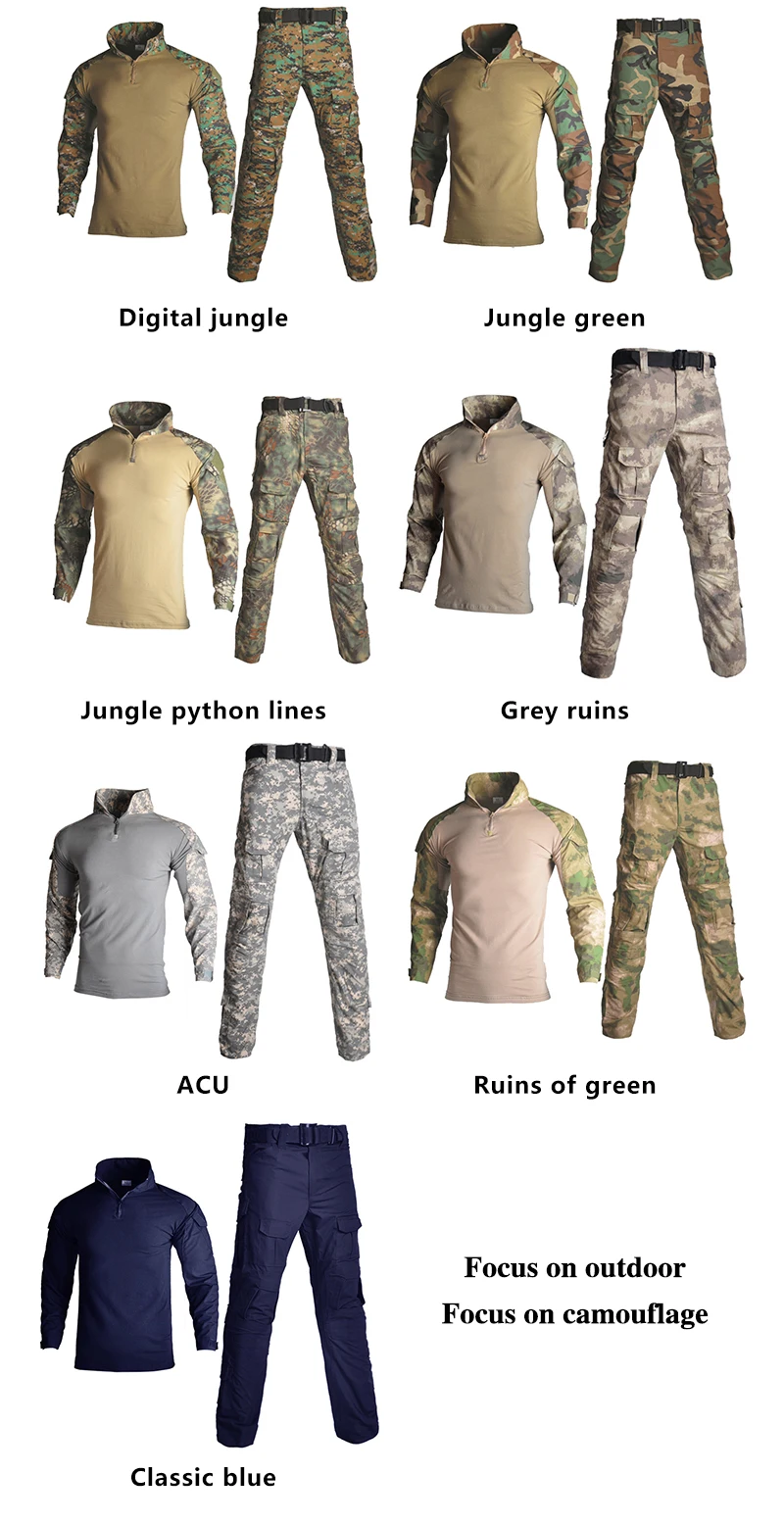 HAN WILD camisa deportiva para exteriores, uniforme táctico de combate, pantalones de camuflaje para caza y pesca, ropa verde arrugada para hombre