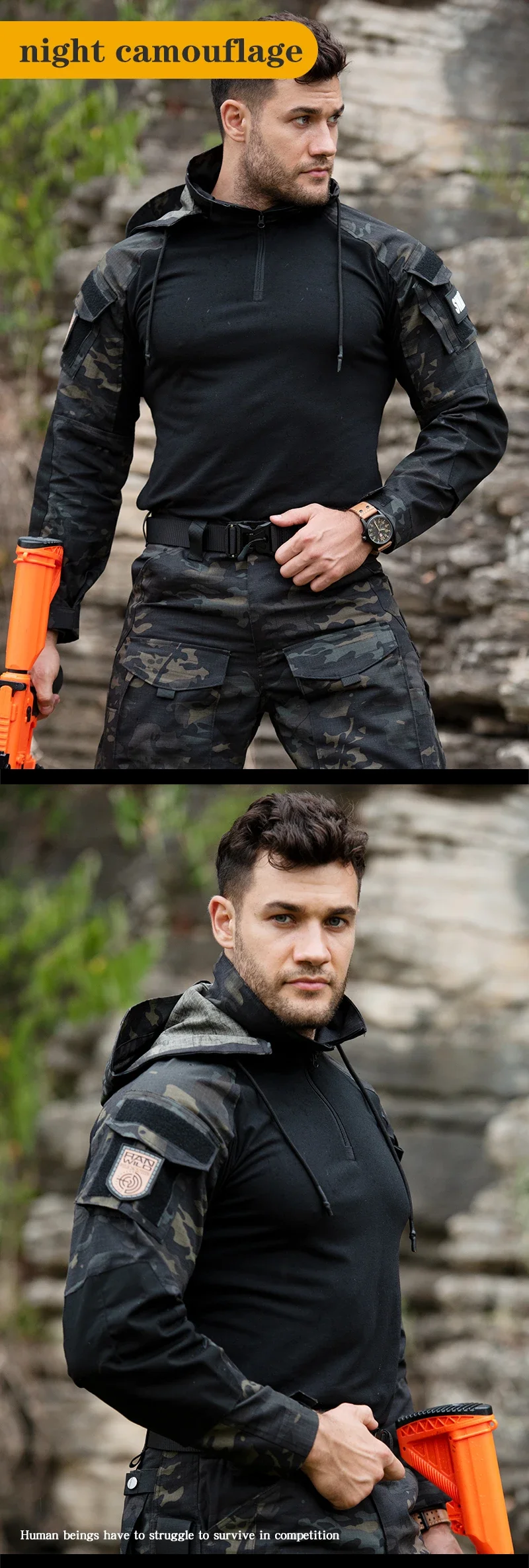 HAN WILD-camisas tácticas para hombre, ropa de trabajo de Paintball Airsoft, pantalones, uniforme con almohadillas, trajes de combate de tiro, pantalones de acampada de camuflaje estadounidense