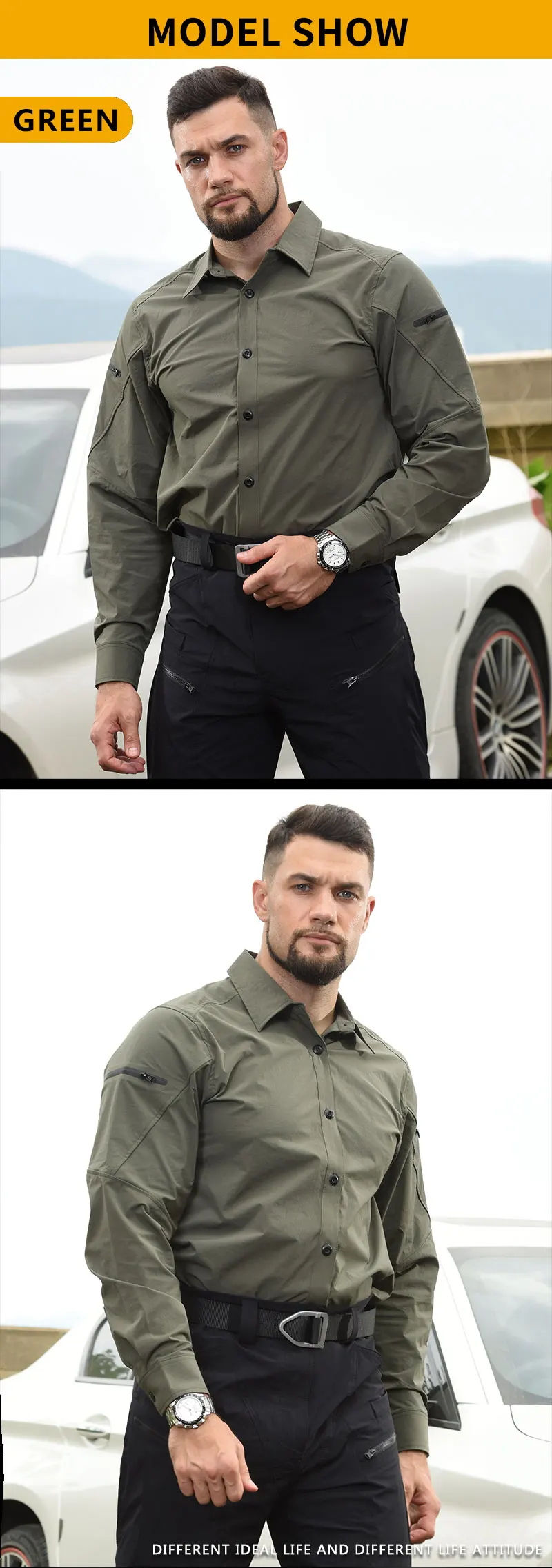 HAN WILD con 2 bolsillos con cremallera en el pecho, camisa táctica para hombre, camisa protectora de manga larga de secado rápido para caza, camisetas de trabajo para exteriores Material:Nylon + Spandex Característica: Resalta la forma del cuerpo Hombro 2 bolsillos de velcro Transpirable/resistente al desgaste Anti salpicaduras/no decoloración Fácil de limpiar/sin hierro Resistencia al desgaste/resistencia al desgarro Ocio urbano/deportes al aire libre Hebilla ignífuga/resistencia a altas temperaturas Logo iluminado trasero/seguridad Cremallera impermeable/diseño adhesivo sin costuras