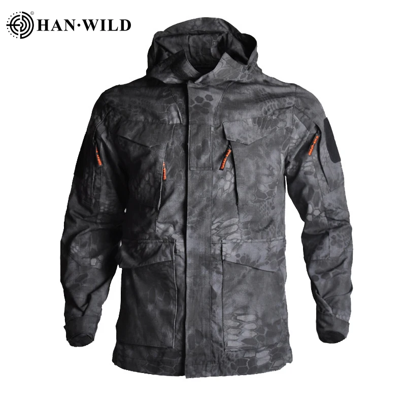 HAN WILD-chaqueta militar M65, ropa táctica, cortavientos, capucha, senderismo, exteriores, deportes, caza, rasgado, Camuflaje, Ejército