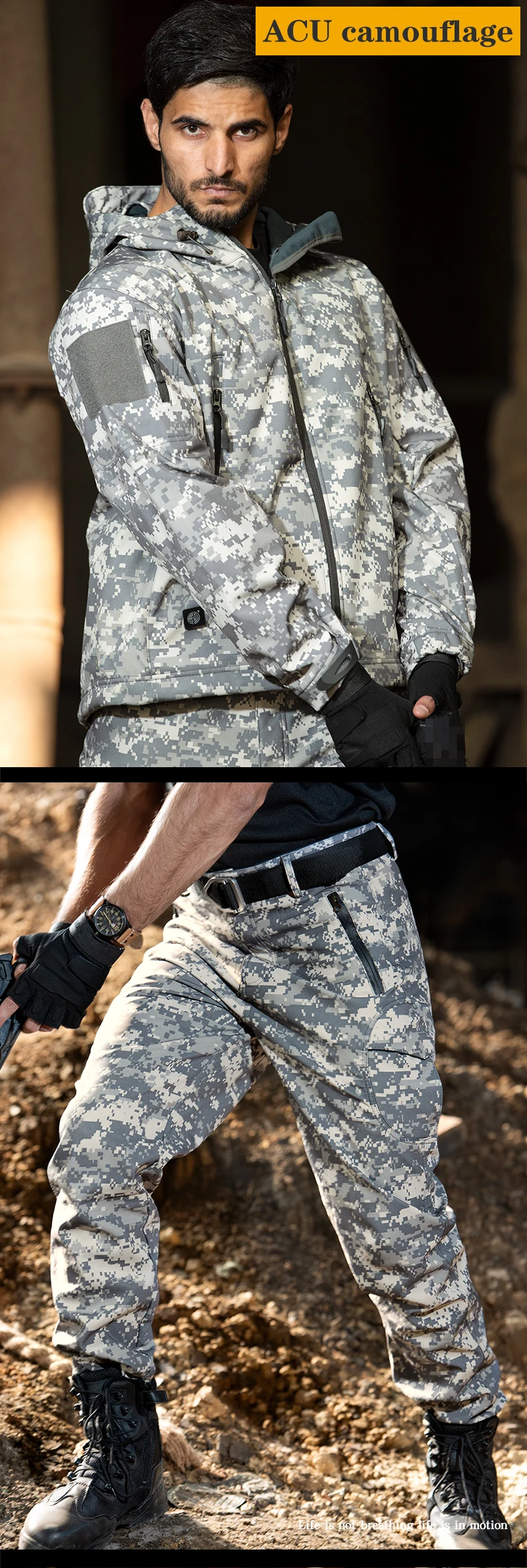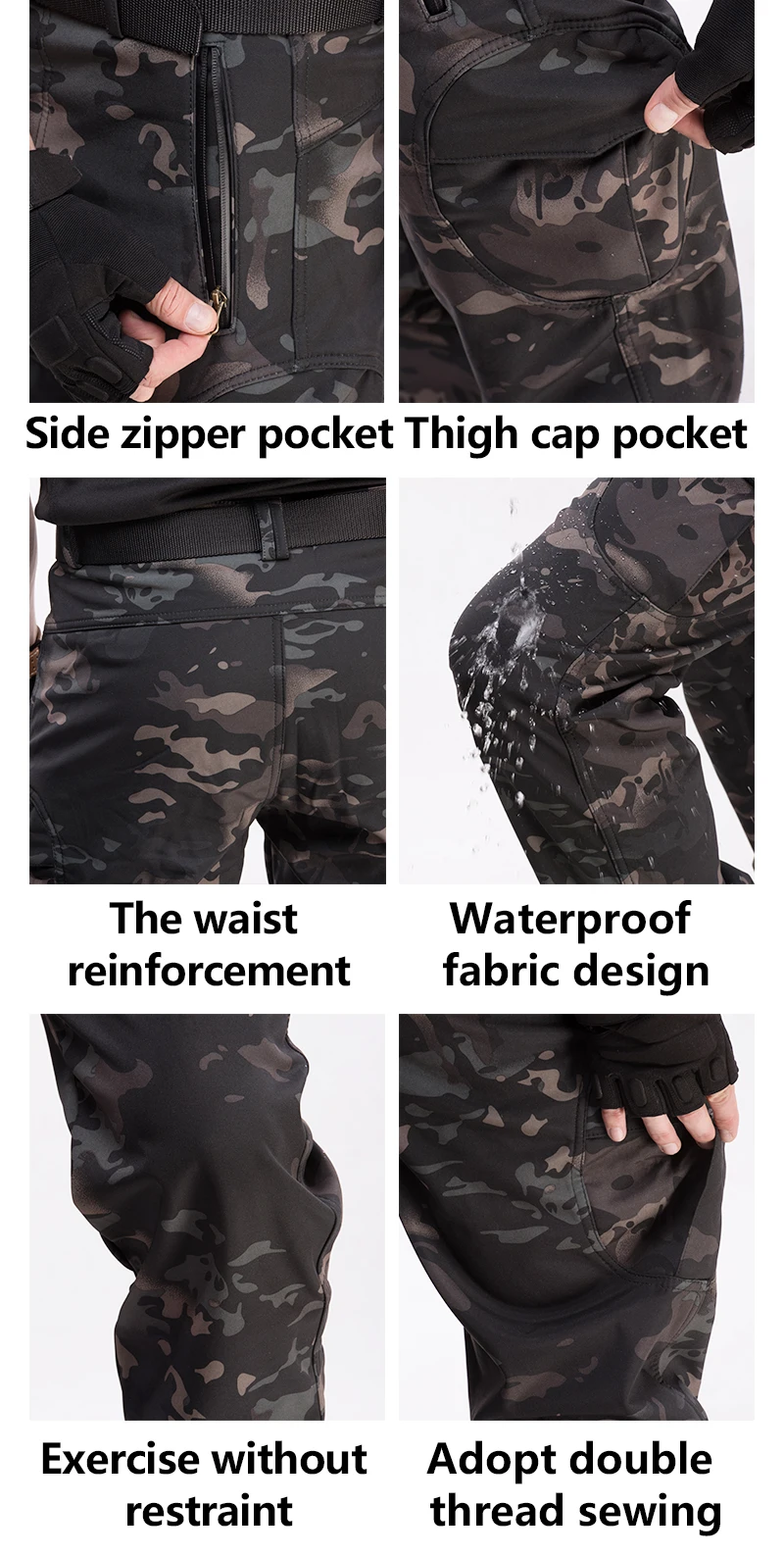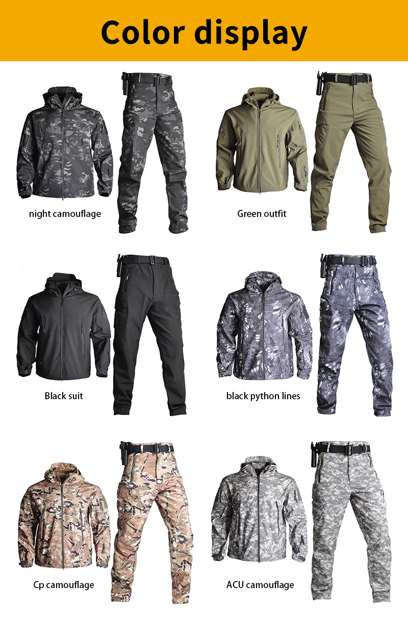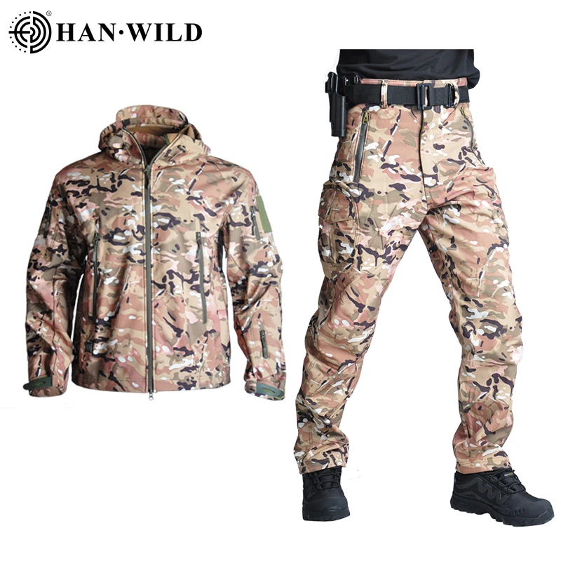 Chaqueta táctica para hombre, chaquetas de concha suave, impermeable, ropa de caza de camuflaje, traje de camuflaje, piel de tiburón, abrigos militares + Pantalones