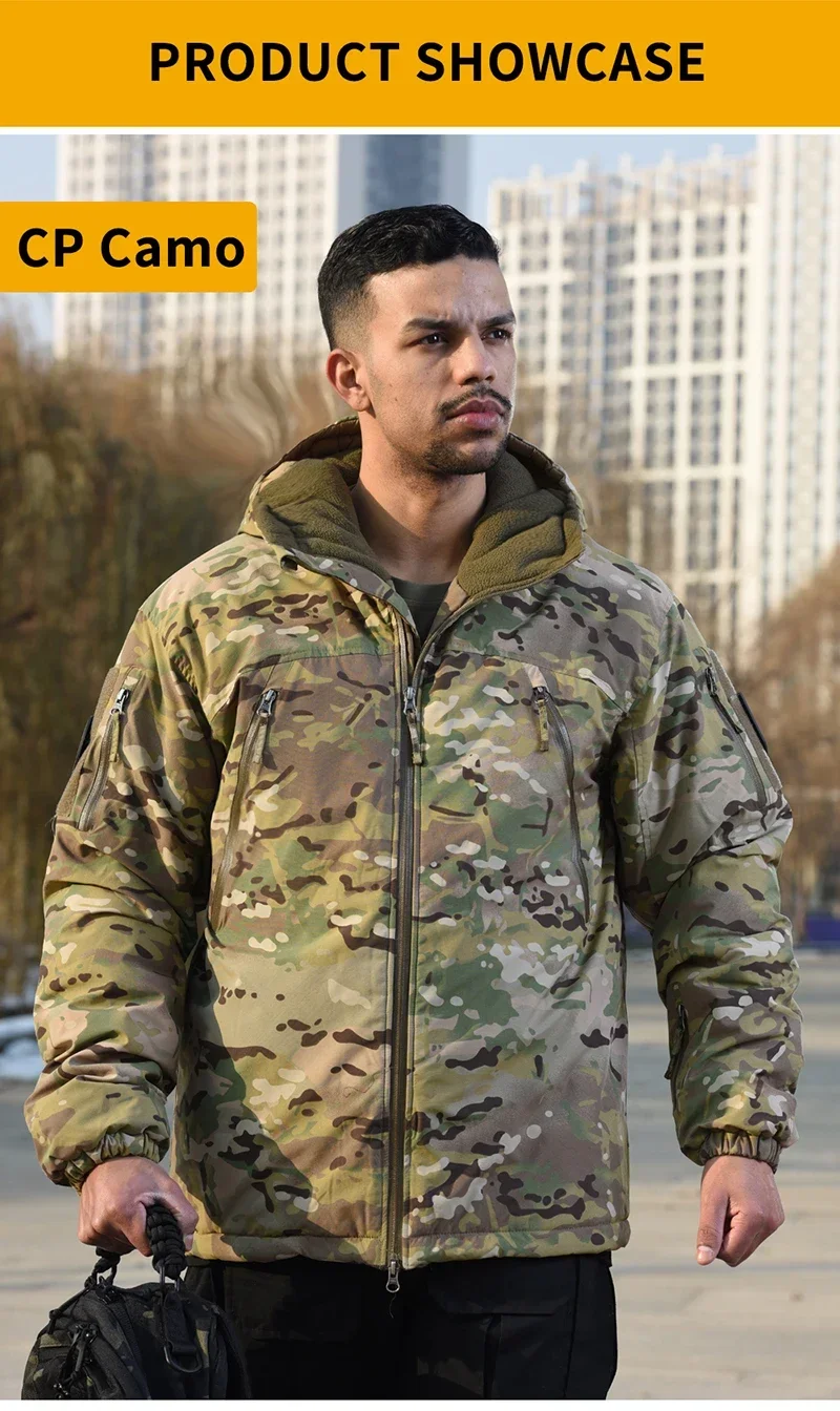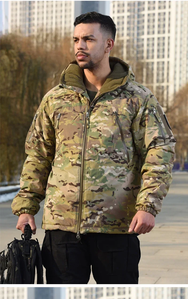 HAN WILD-Chaqueta táctica para hombre, ropa cálida a prueba de viento, chaquetas de invierno de camuflaje, abrigo de algodón para hombre, ropa gruesa para senderismo