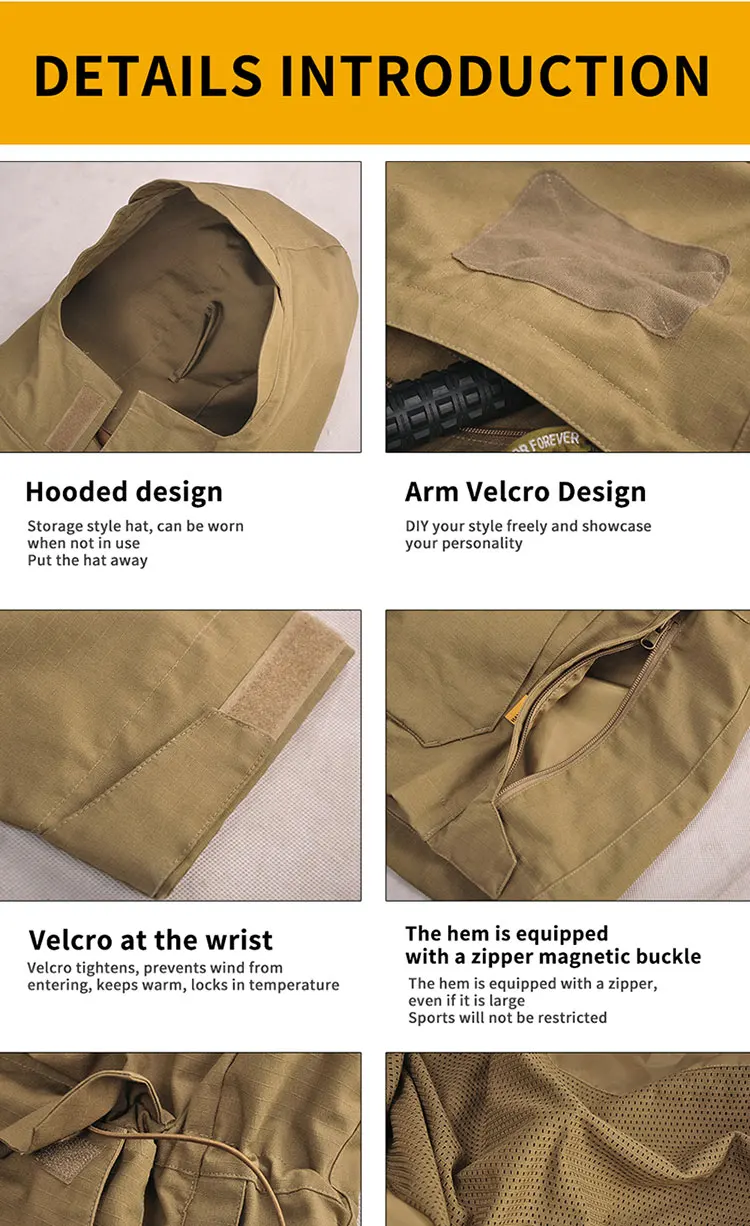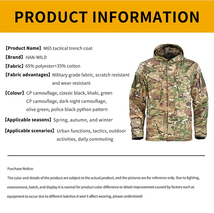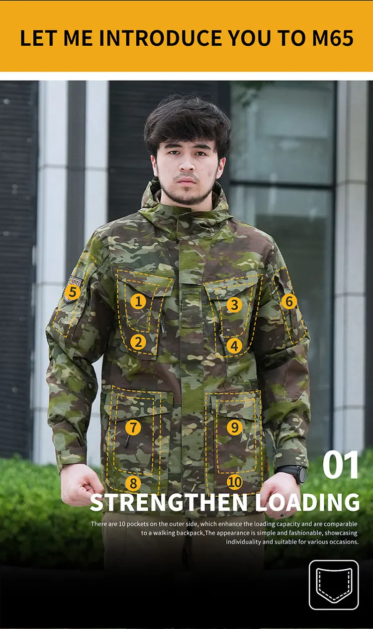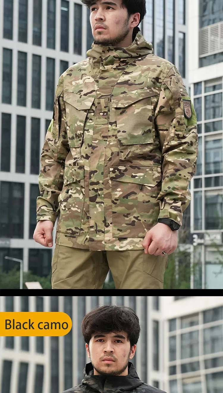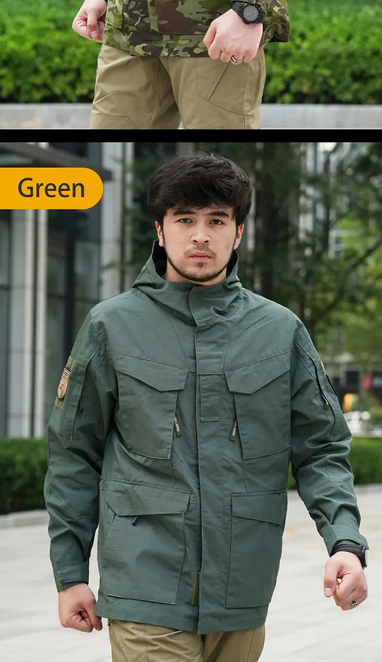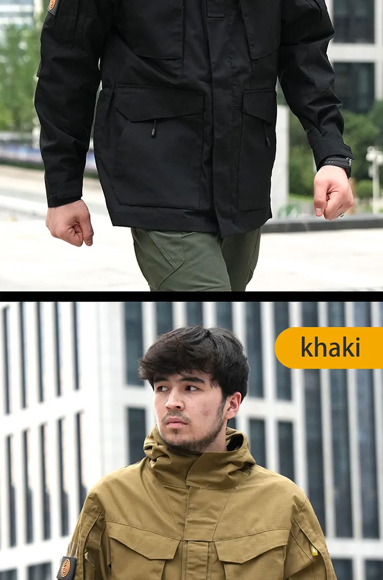 HAN WILD-cortavientos táctico M65 para hombre, chaquetas de senderismo, chaqueta de combate, Sudadera con capucha impermeable, abrigo de piloto de vuelo, uniforme de escalada a prueba de viento