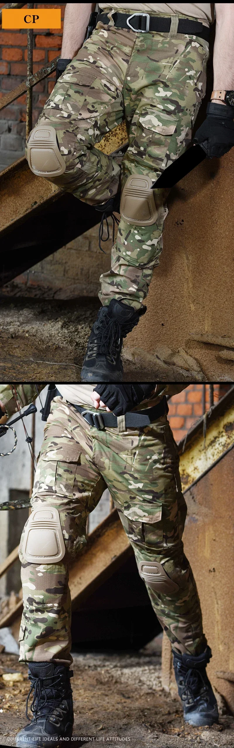 El paquete incluye1 pantalón táctico con 2 rodilleras