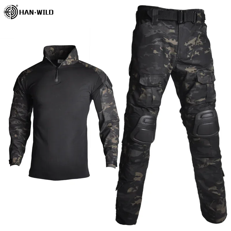 Traje de caza de algodón HAN WILD, camisa Multicam, pantalones de escalada, traje de combate táctico de camuflaje Ghillie, uniforme Airsoft para exteriores para hombre