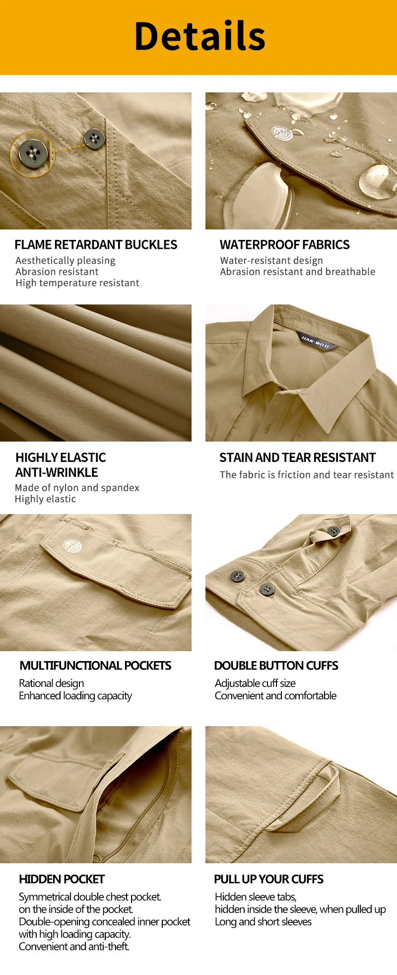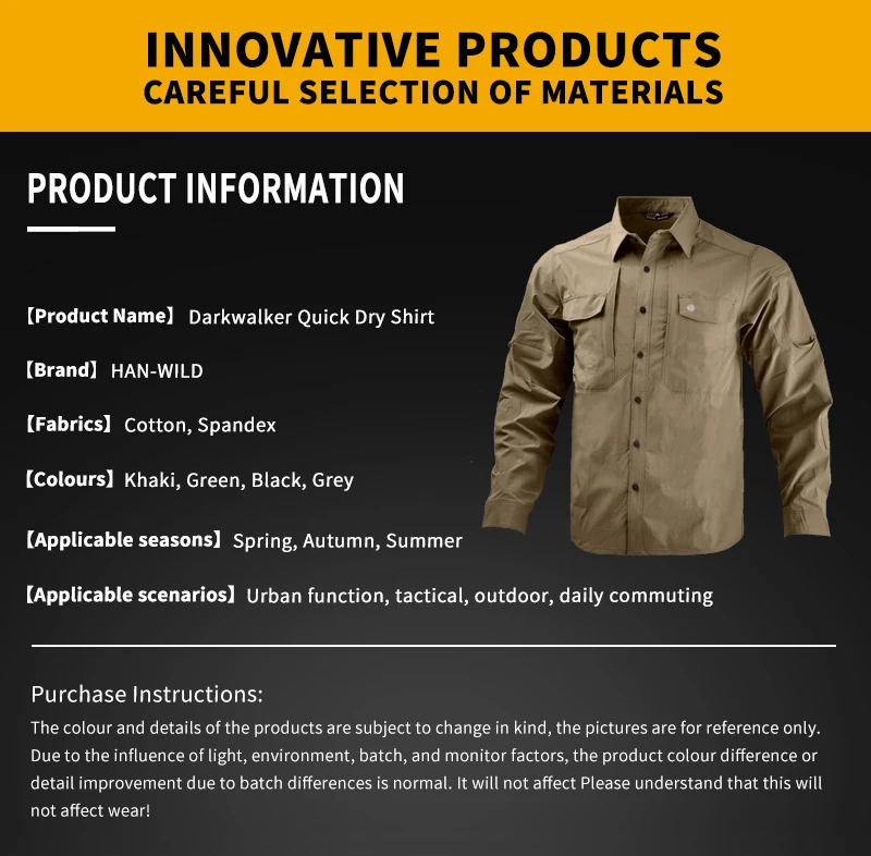 HAN WILD uniforme de caza, traje de secado rápido, camisa de senderismo, ropa táctica militar, blusa informal sólida, pantalones Cargo, trabajo al aire libre