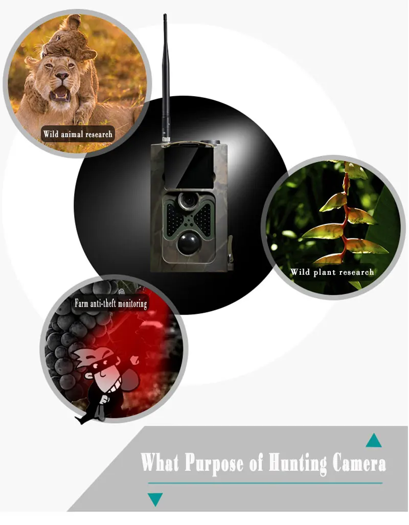 1, Cámara de rastreo para cazar 2, Observación de animales o eventos 3, Cámara de seguridad activada por movimiento, para el hogar, oggice y comunidad 4, Toda otra vigilancia interior/exterior donde se necesite evidencia de invasión