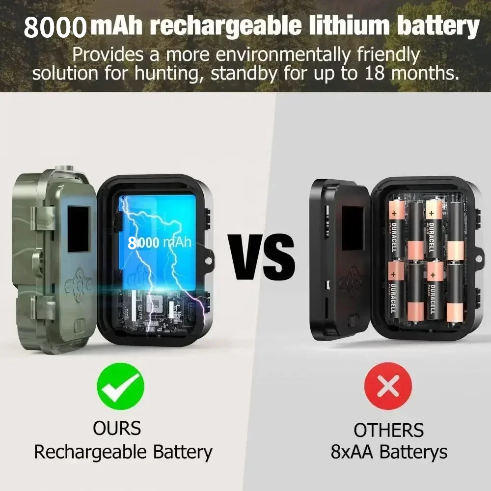 【Visión nocturna avanzada】Esta cámara de juego celular está equipada con un filtro IR completamente automático y un flash infrarrojo de vestido bajo de 58 LED 940, con un alto rango dinámico y una alta velocidad de fotogramas, produce una visión nocturna clara en total oscuridad.Distancia de disparo y alcance del flash IR de hasta 20 m (65 pies).La amplia lente dinámica con 120° El ángulo PIR y el disparador rápido de 0,3 segundos le permiten capturar de 1 a 9 fotos/vídeos por disparador.