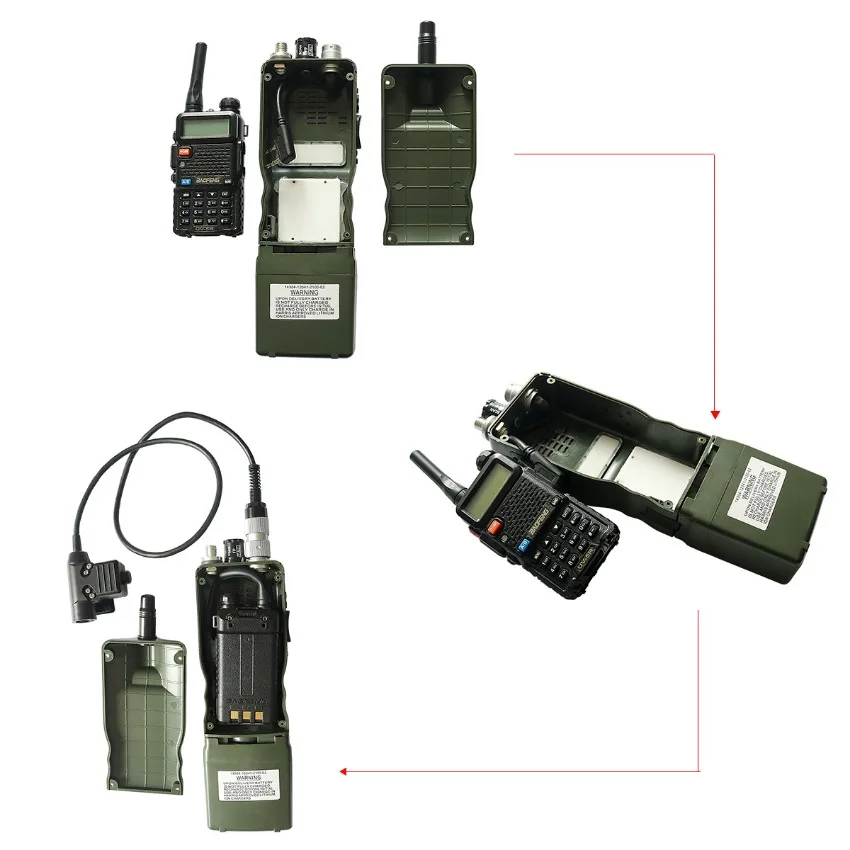 Conexión interna: hay un enchufe de radio Baofeng, solo necesita presionar el conector en el walkie-talkie en lugar de reinstalar el cable de U94 PTT. Esta carcasa de PRC-152 es más conveniente de usar que la carcasa corriente.