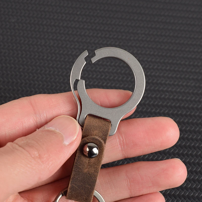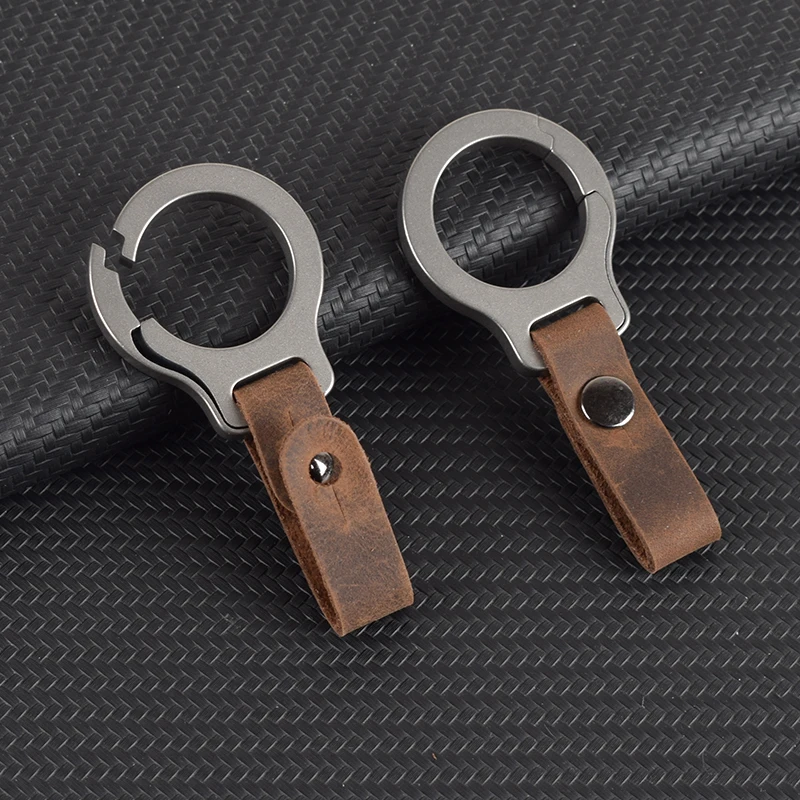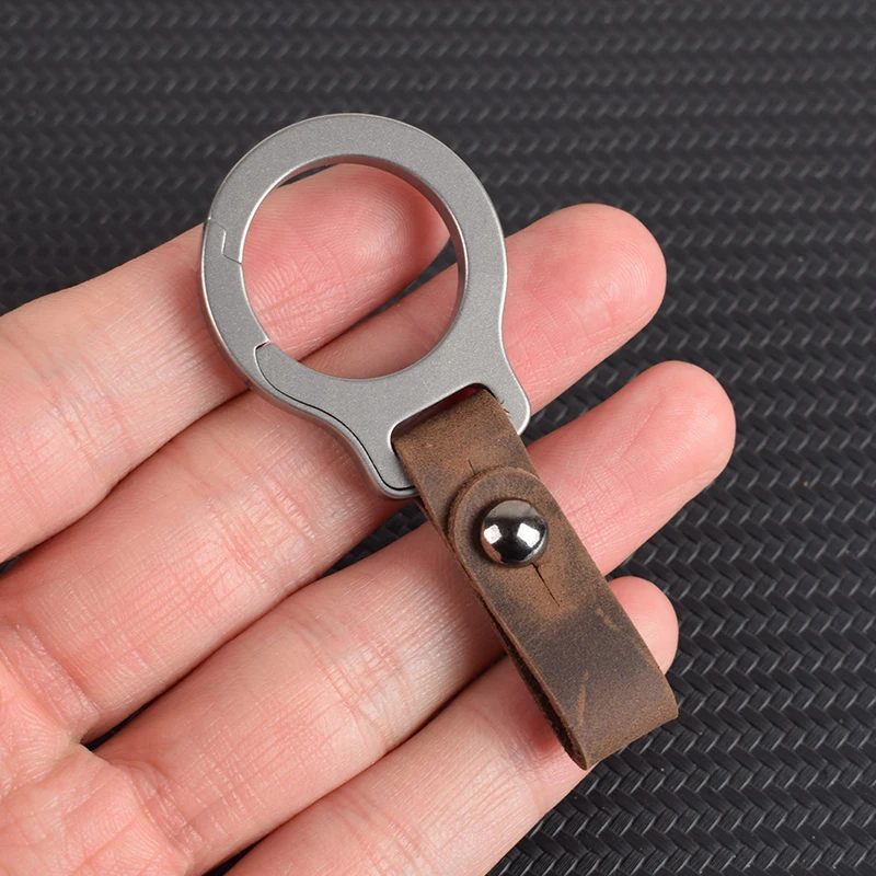 Hebilla de anillo de titanio para llavero de coche, hebilla de cuero de vaca General, hebilla de llave creativa para hombres, anillo de titanio