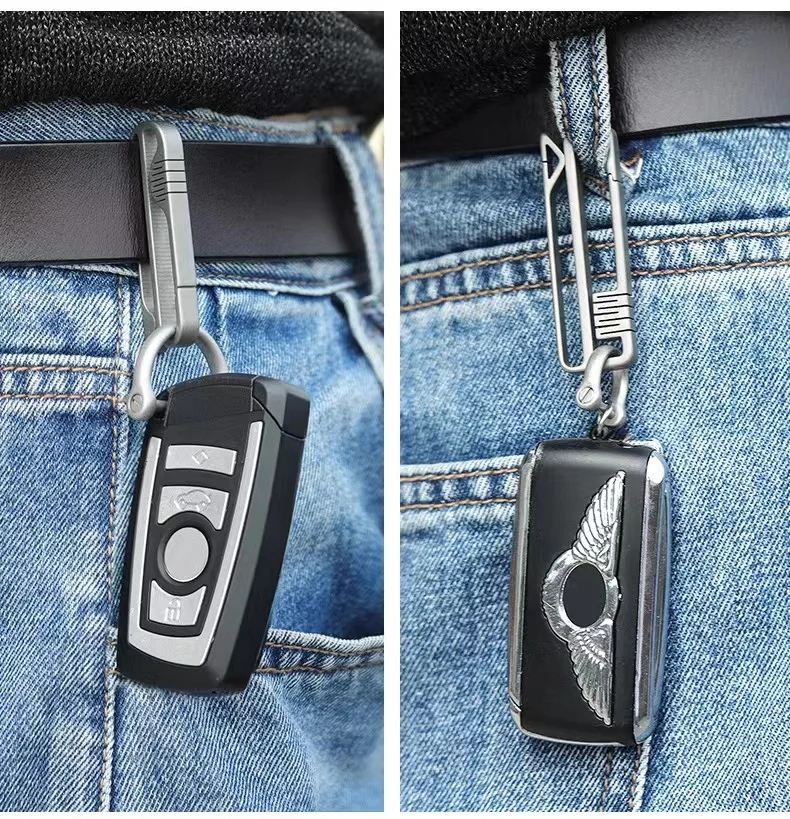 Hebilla de cinturón de titanio para hombre, llavero colgante, anillo de coche, llavero de bloqueo