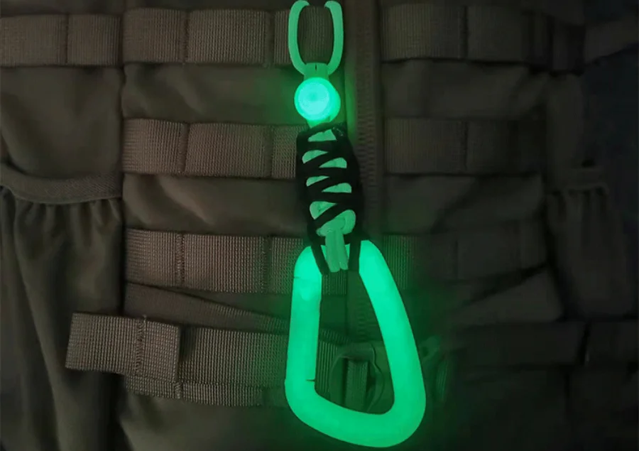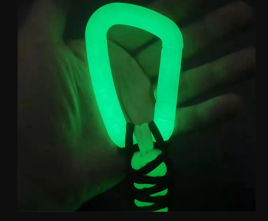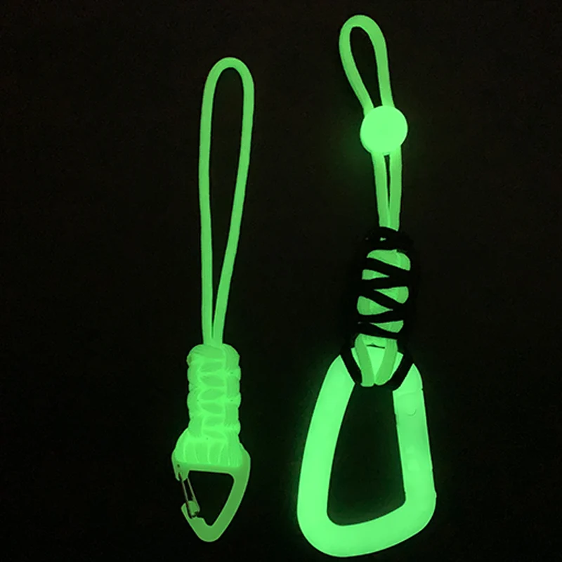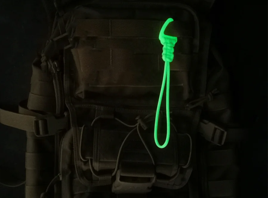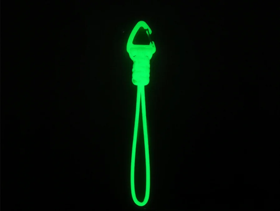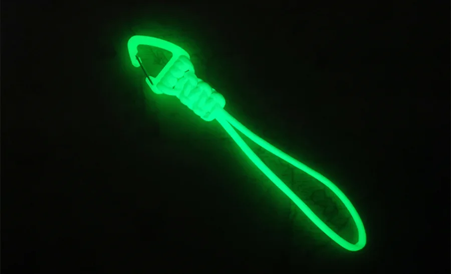Tamaño 1: largo 195mm, ancho 32mmTamaño 2: largo 225mm, ancho 55mmMaterial: Material de POM/poliésterPeso: 27g/7,8gÁmbito de aplicación: se puede utilizar como llavero, cuerda para linterna, cuerda para botella de agua, cuerda para herramientas, etc., para conectar cinturones o bolsas. Con efecto luminoso, se puede distinguir claramente en la oscuridad.