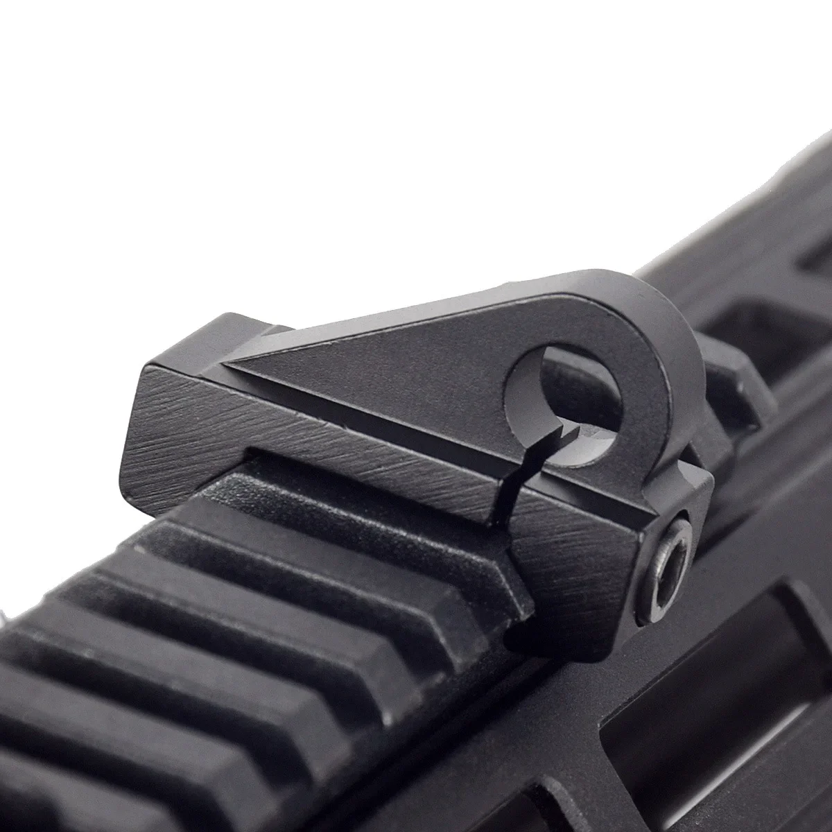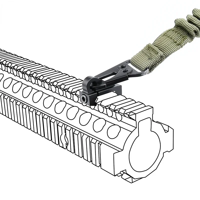 Especificación: Construido de aluminio de alta calidad. Se adhiere a cualquier riel Picatinny / Weaver. Acepta todas las eslingas de hasta 1,25" Acabado anodizado duro negro. Se adapta a montar cualquier riel picatinny y Weaver. Fácil de instalar con un Perno de bloqueo