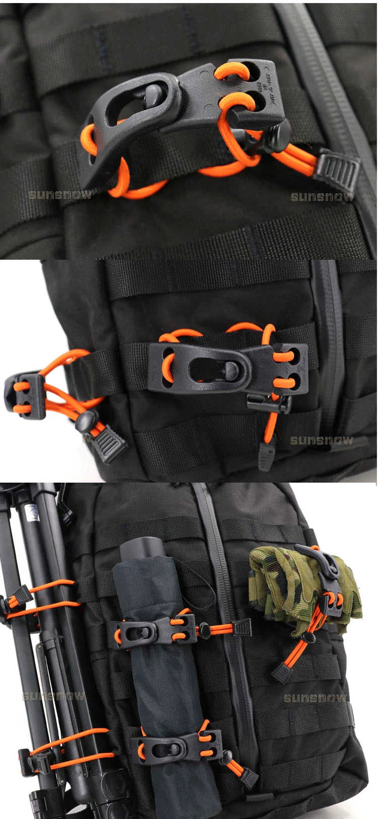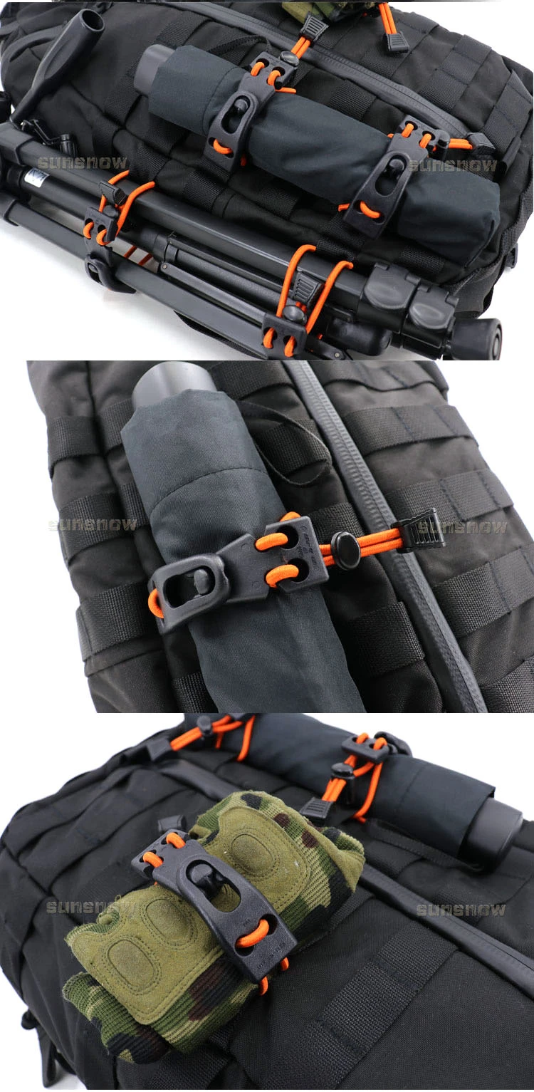 Nuevo Molle para exteriores, hebilla de cincha, cierre de Clip, linterna táctica, hacha de hielo, palo para caminar, trípode, Clip fijo