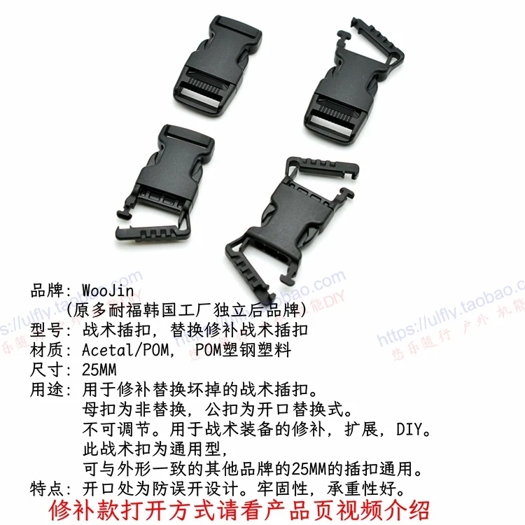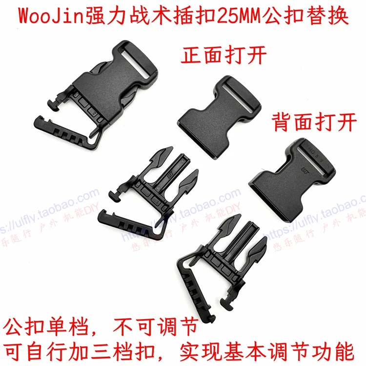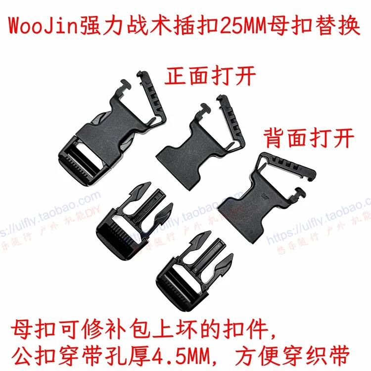 The female buckle is non-replacement, and the male buckle is open replacement.