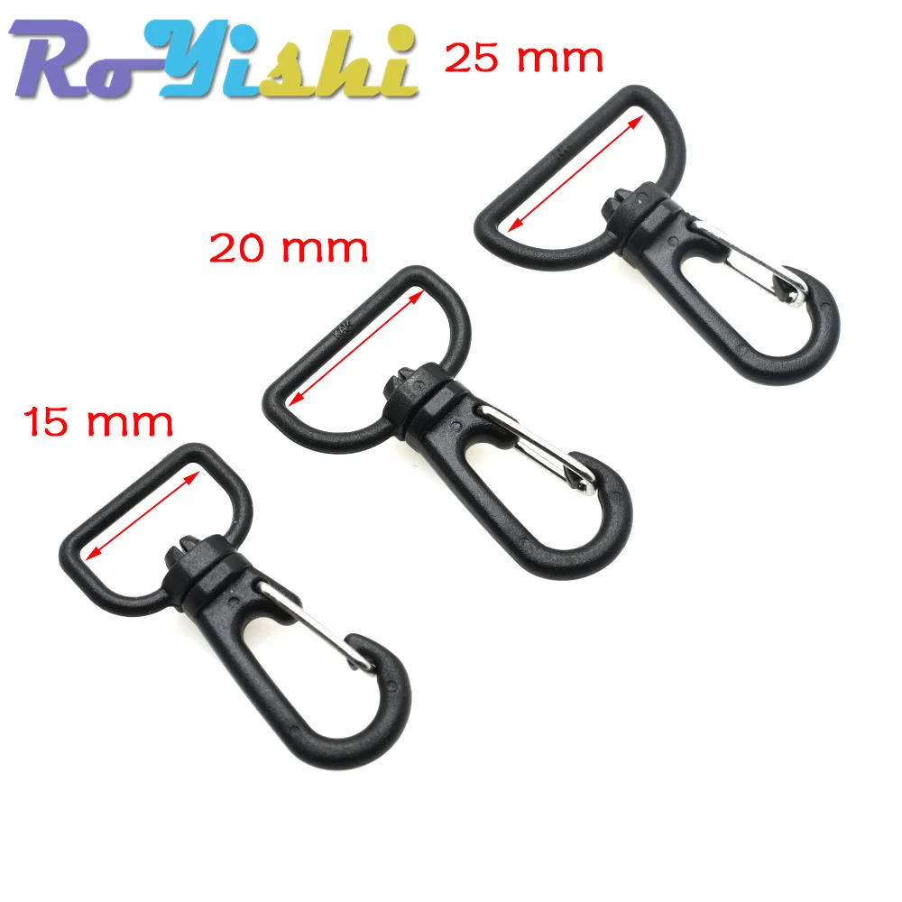 Hebilla de gancho giratorio de plástico negro para tejido, cordón de Paracord, correa de mochila, mosquetón, 10 unids/lote por paquete