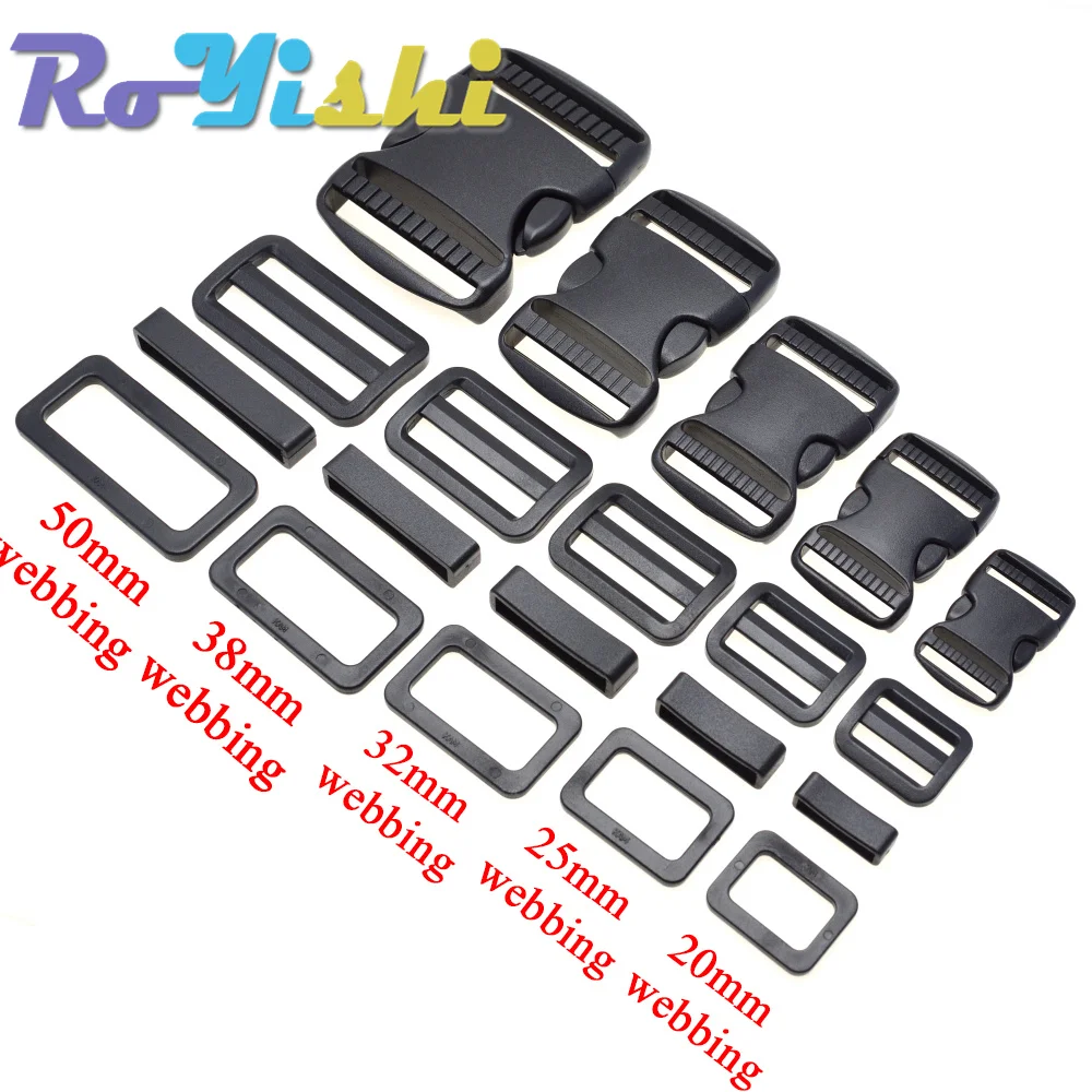 Hebilla de Liberación lateral curvada para Paracord, deslizador de plástico, anillo rectangular ajustable, bucle de cinturón, 20mm, 25mm, 30mm, 38mm, 50mm, 1 Juego
