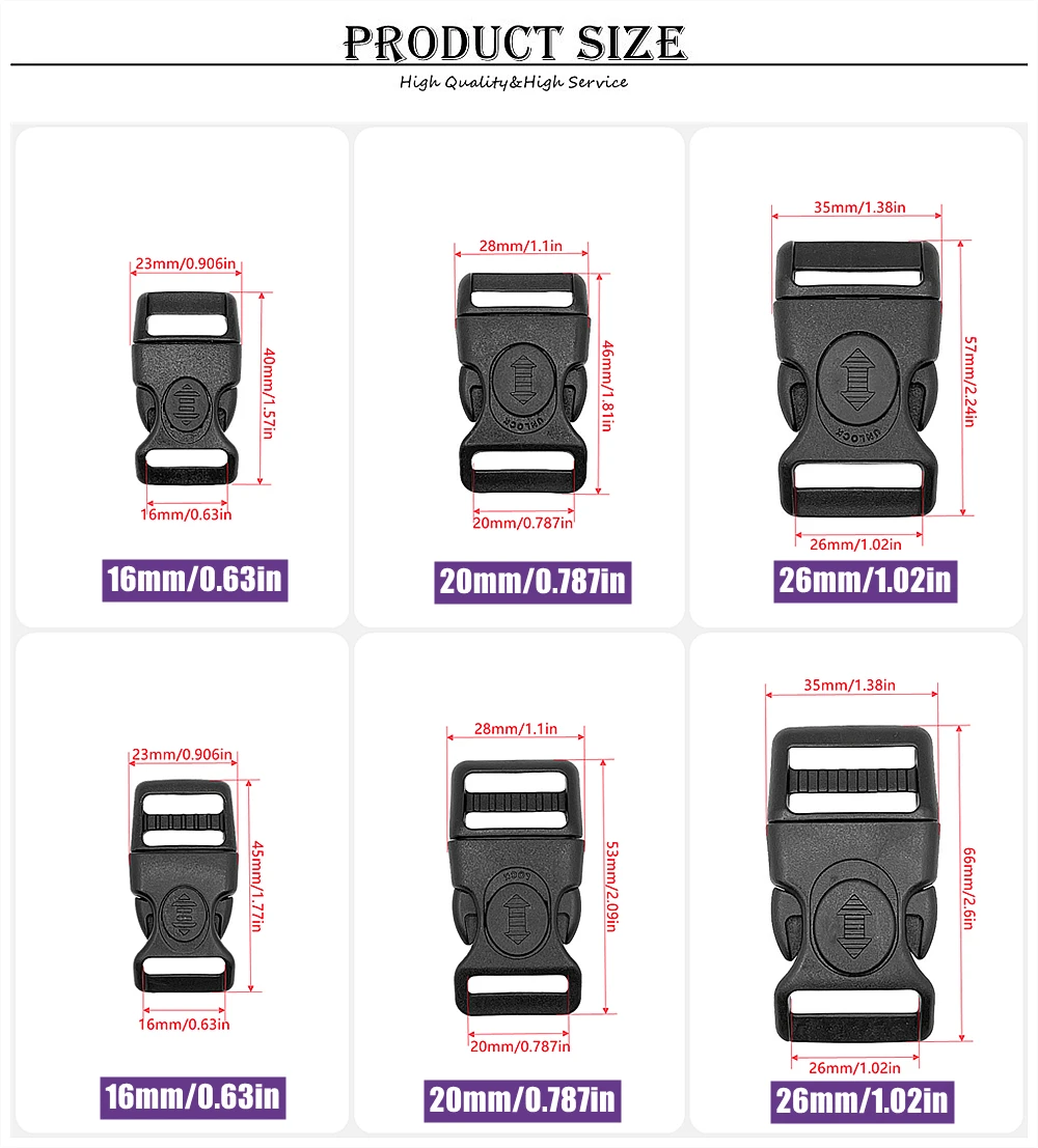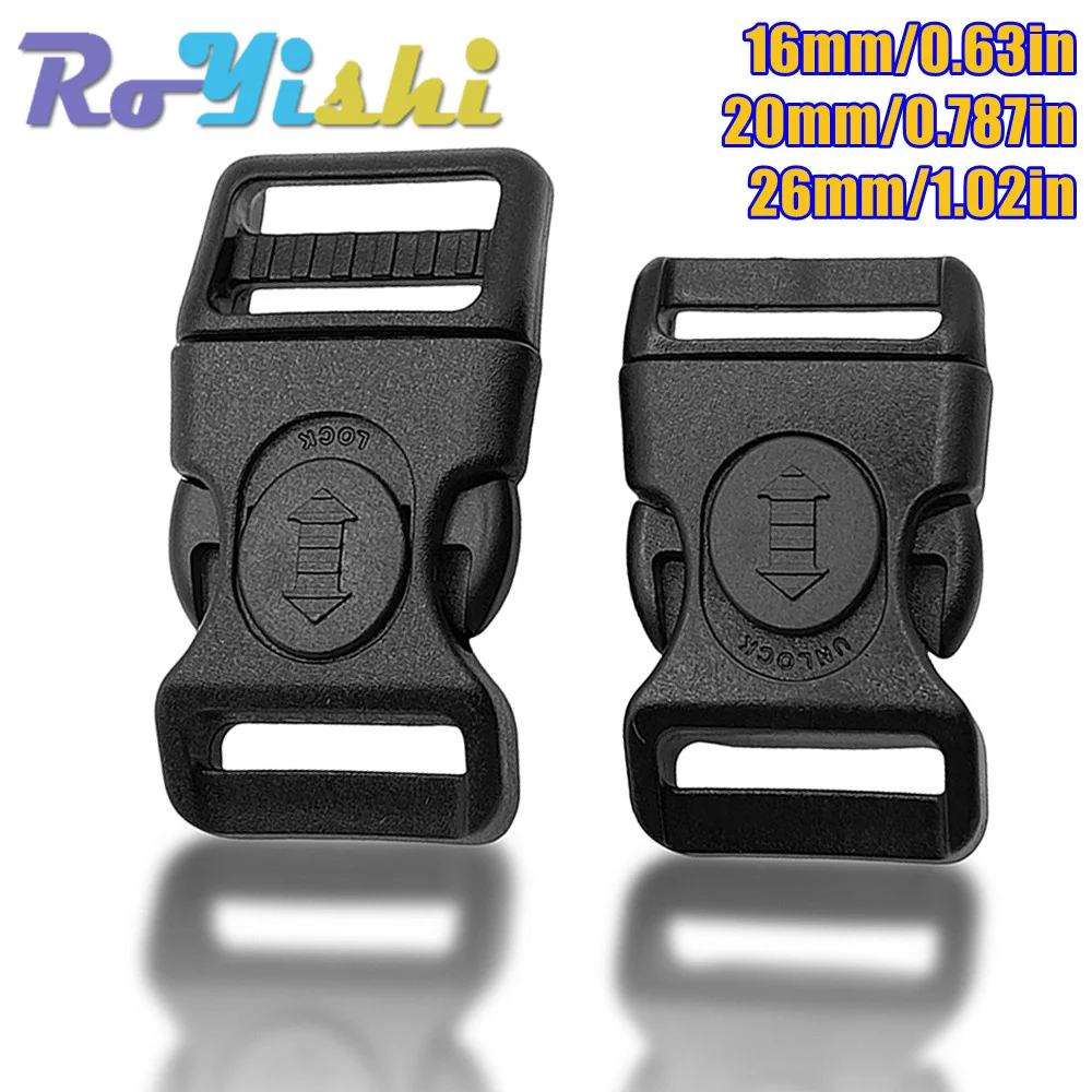 Hebilla de liberación lateral curvada de plástico, 2 uds., 16/20/26mm, con cerradura para pulsera de paracaídas, accesorios para equipaje y mochila