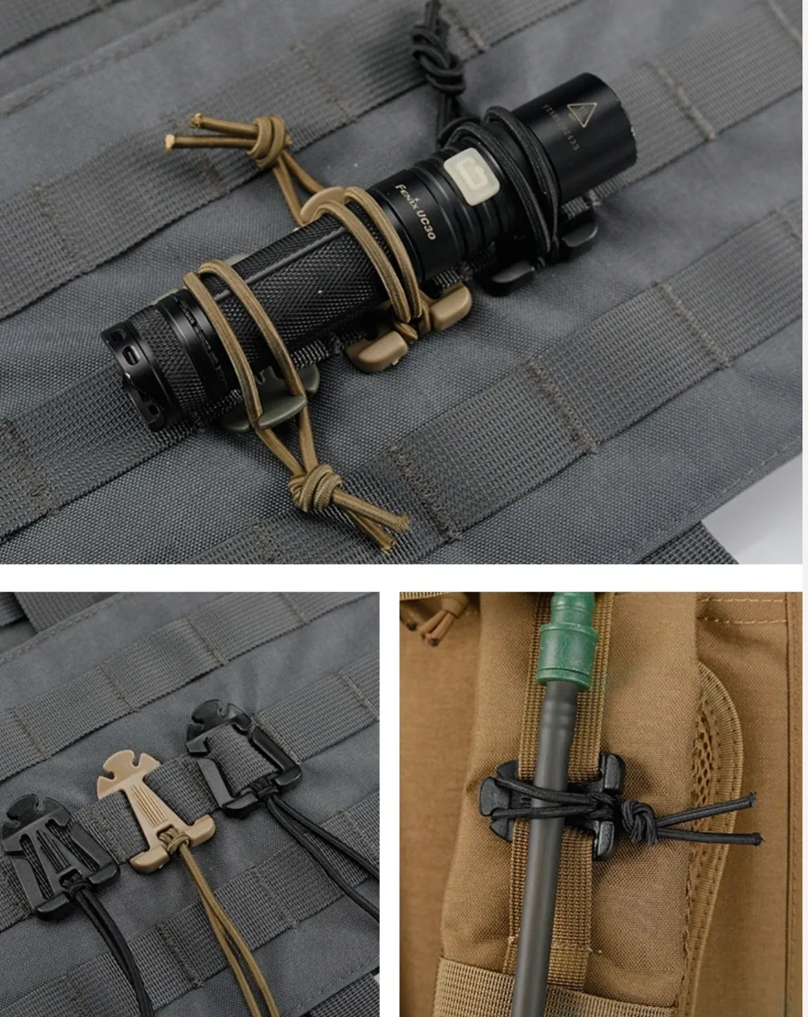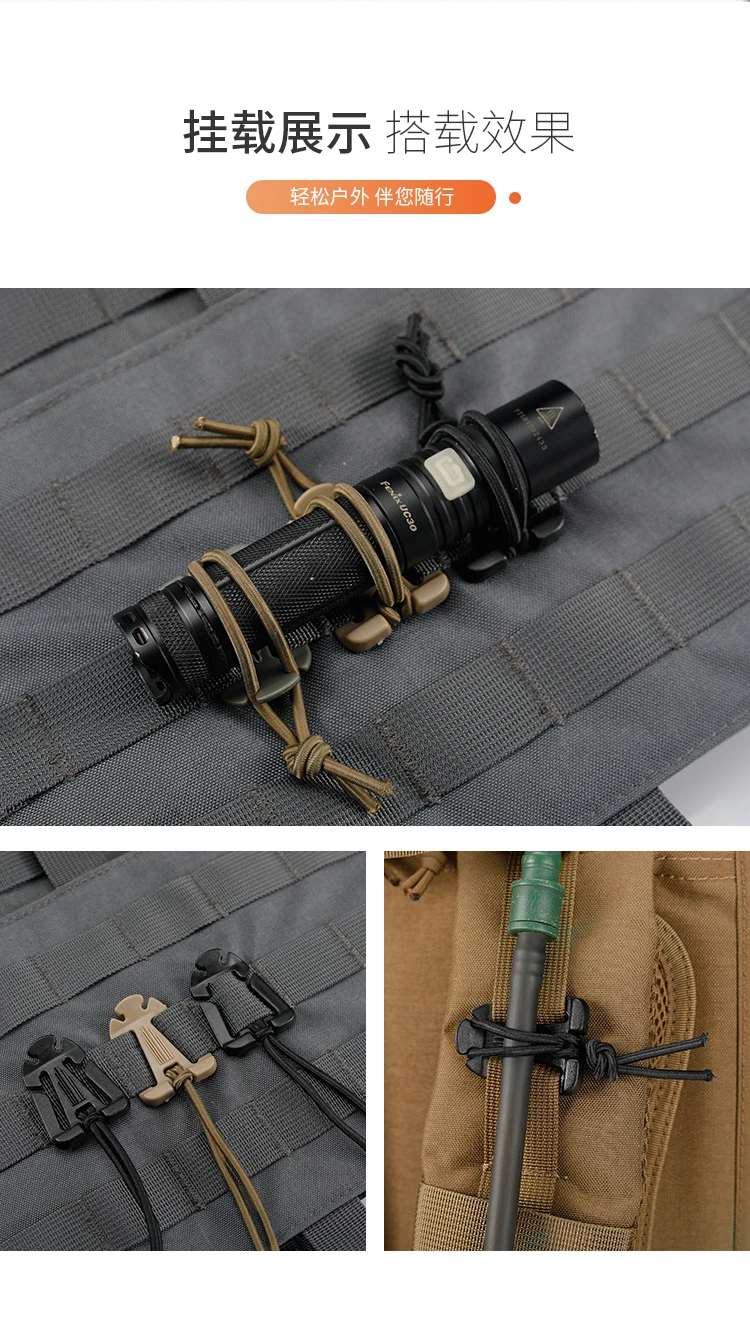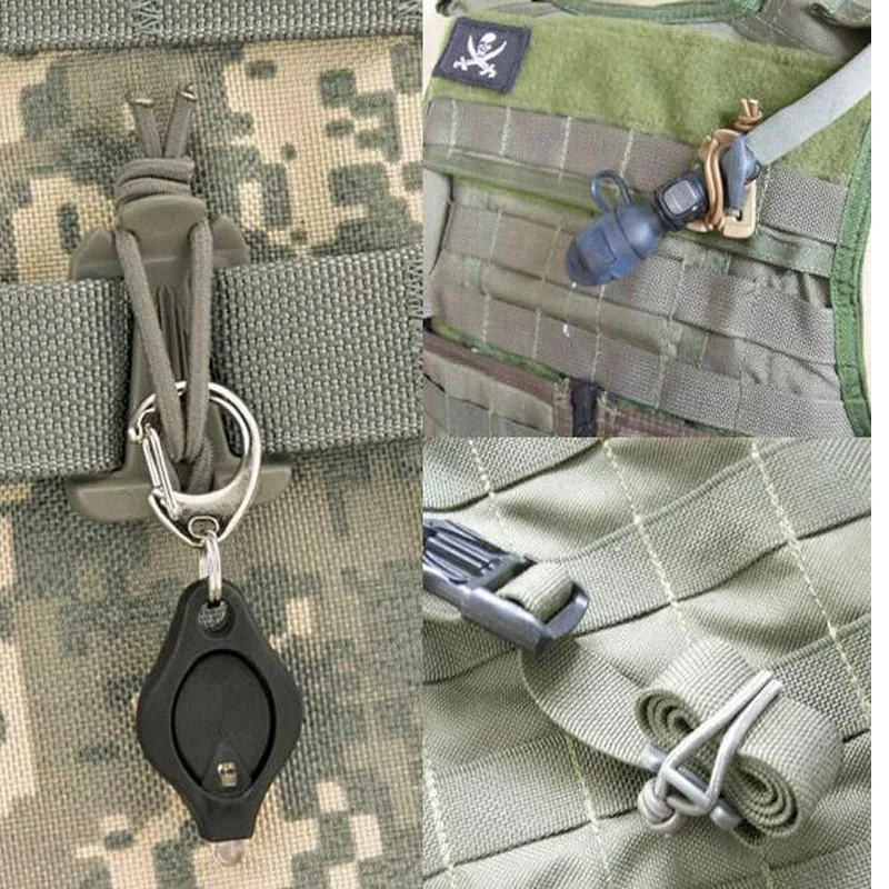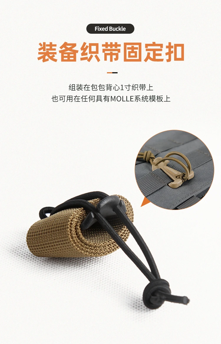Tipo: Mosquetones Quickdraws Función: hebilla Molle Característica: con hebilla de mochila de cuerda elástica estilo: hebilla de triangulación aplicación: Abrazadera de bobinado función: Clip de cinta material: nailon