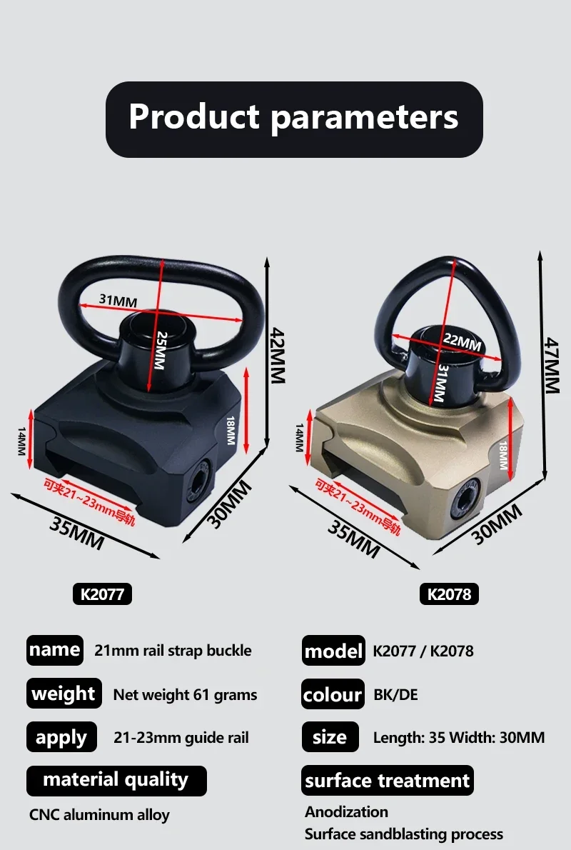 Hebilla de pulgar táctica, hebilla de separación rápida, adaptador de montaje de eslinga QD compatible con riel de 20mm, accesorios para pistola de Rifle Airsoft de caza