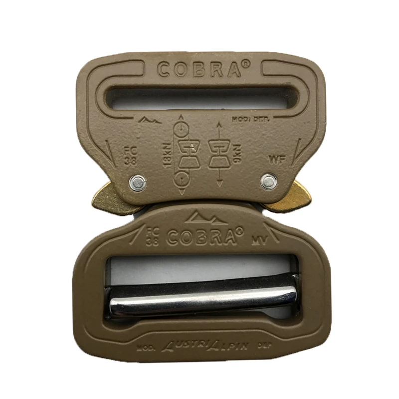 Hebilla de serpiente para cinturón táctico, 38mm/50mm, revestimiento marrón para correas