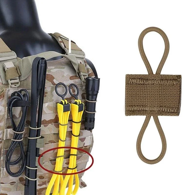 4. Accesorios para chalecos o bolsas, proporciona puntos de montaje adicionales. Contiene y gestiona tubos de hidratación, cableado de comunicaciones, antena PTT, correas sueltas, linterna, cuchillos, palos. Etc