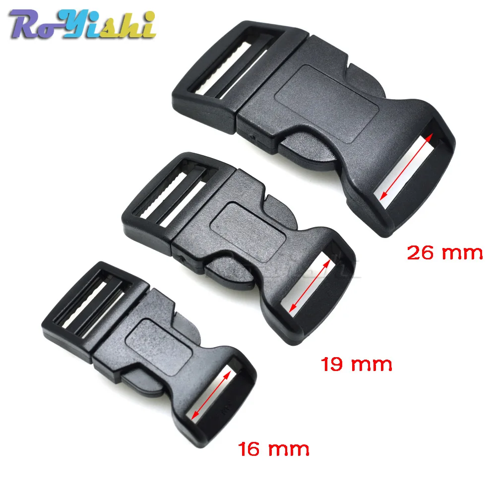 Hebillas de Liberación lateral contorneadas para pulseras de supervivencia Paracord/Collar de perro negro, 10 unids/paquete