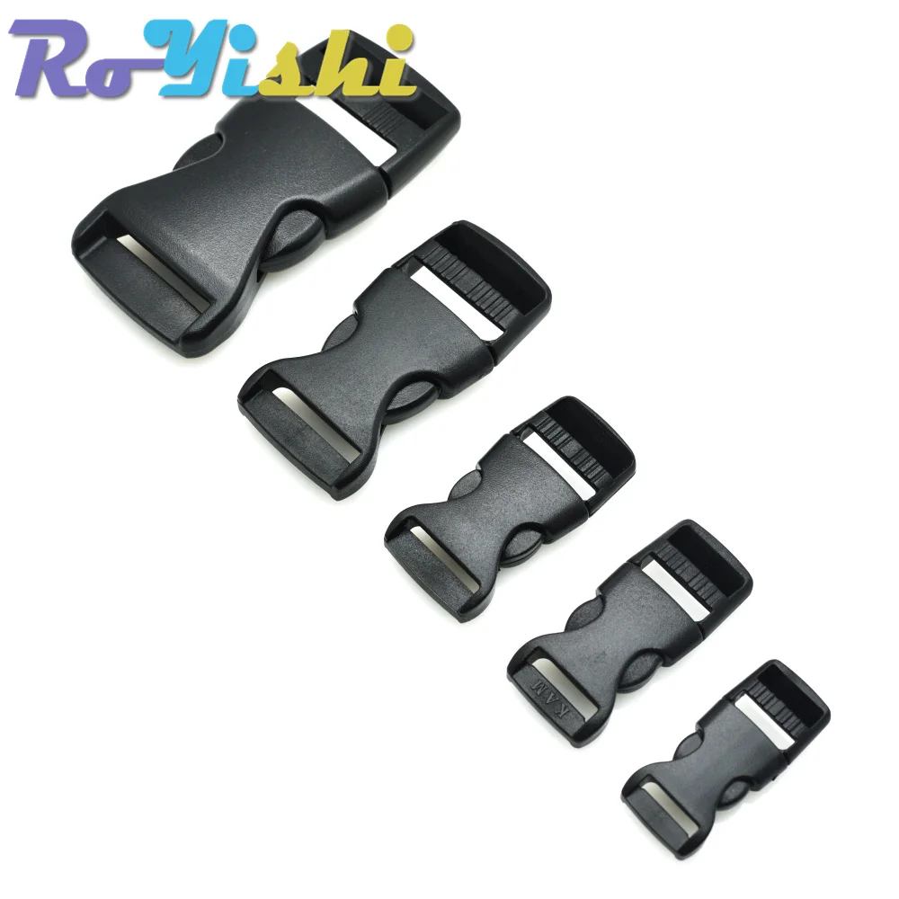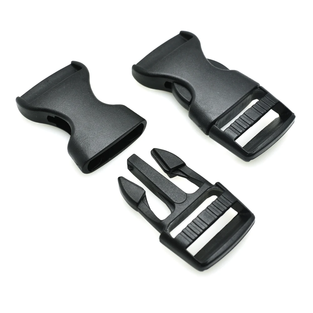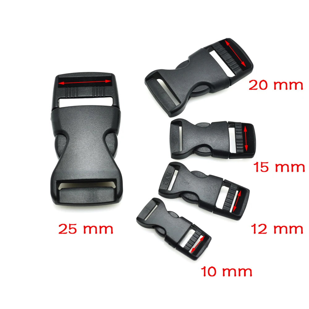 Hebillas de Liberación lateral de plástico para pulsera Paracord/mochila, color negro, 10 unids/lote por paquete