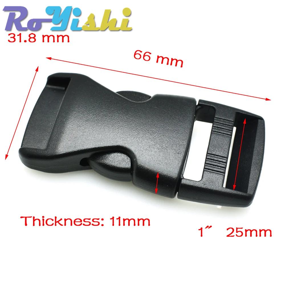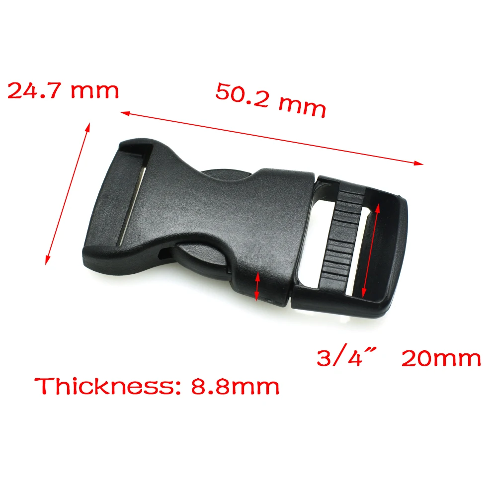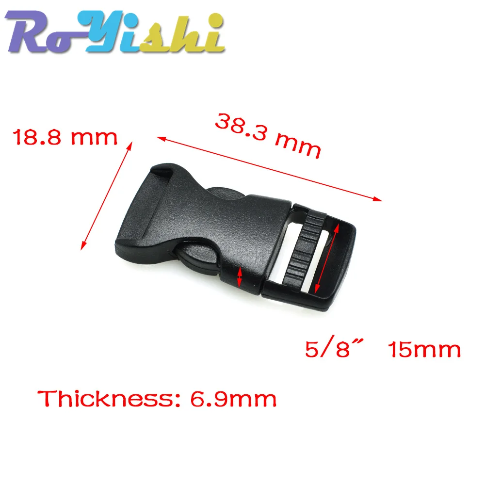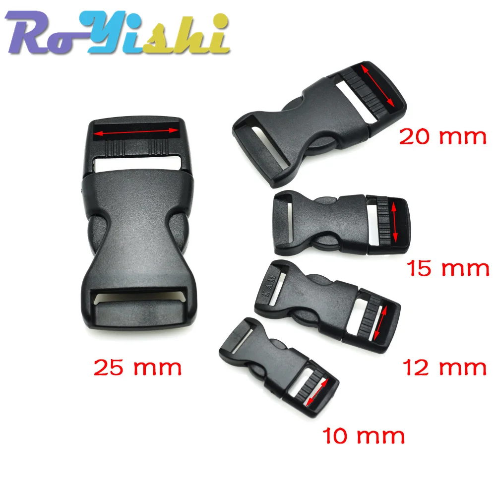 Hebillas de Liberación lateral de plástico para pulsera Paracord/mochila, color negro, 10 unids/lote por paquete