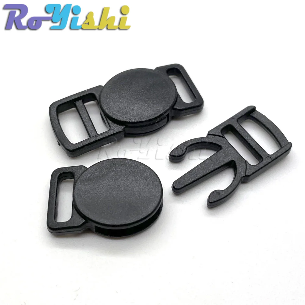 Hebillas de liberación negras, accesorio de plástico redondo para mascotas, pulsera de Paracord, bolsa de correas, accesorios de ropa