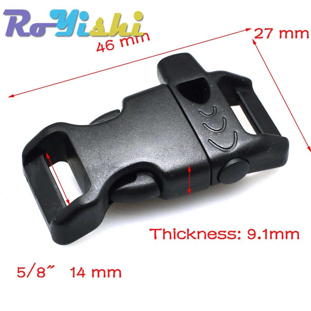Hebillas de silbato de liberación lateral de emergencia de 5/8 "(14 mm) para pulsera de Paracord/mochila/Kits de supervivencia negro
