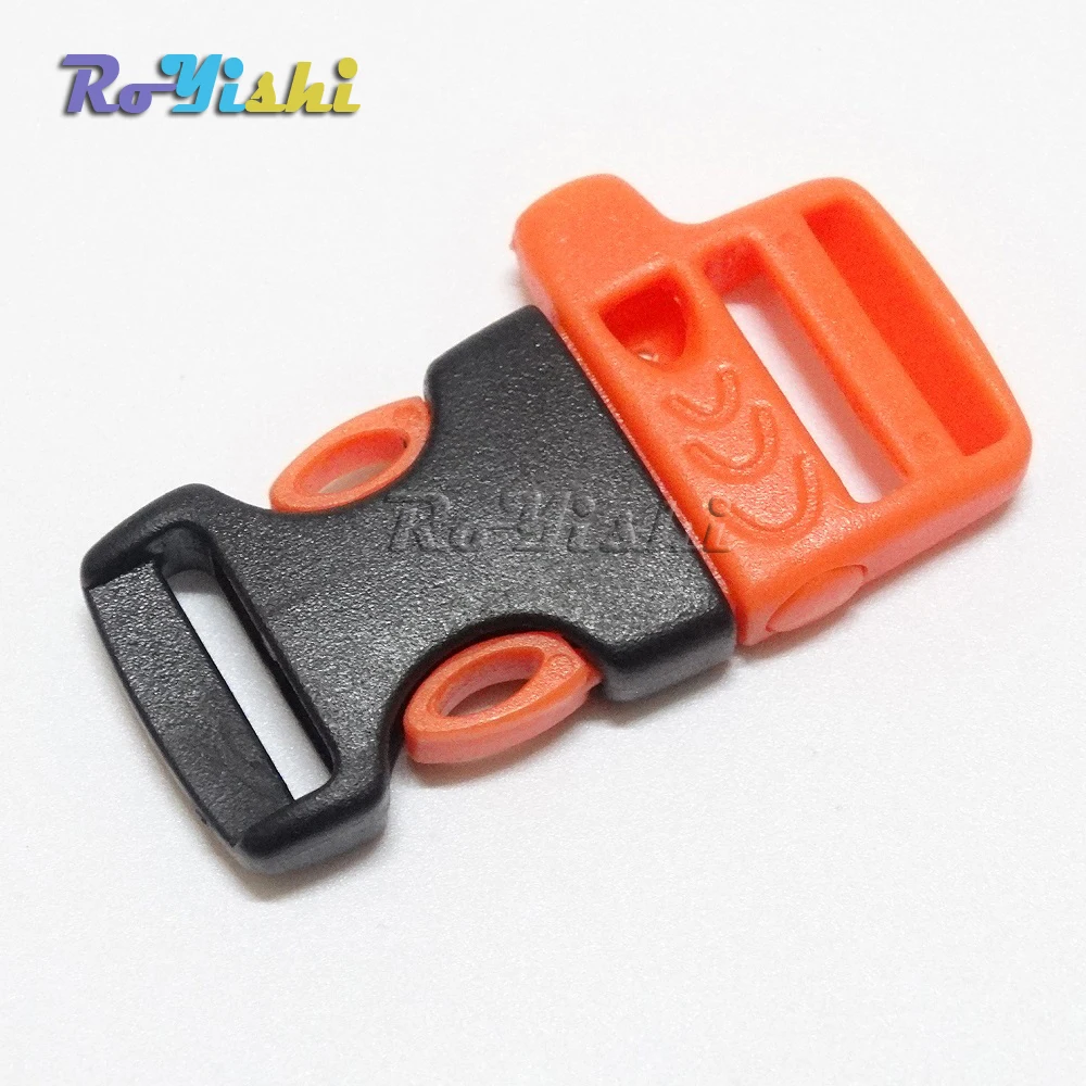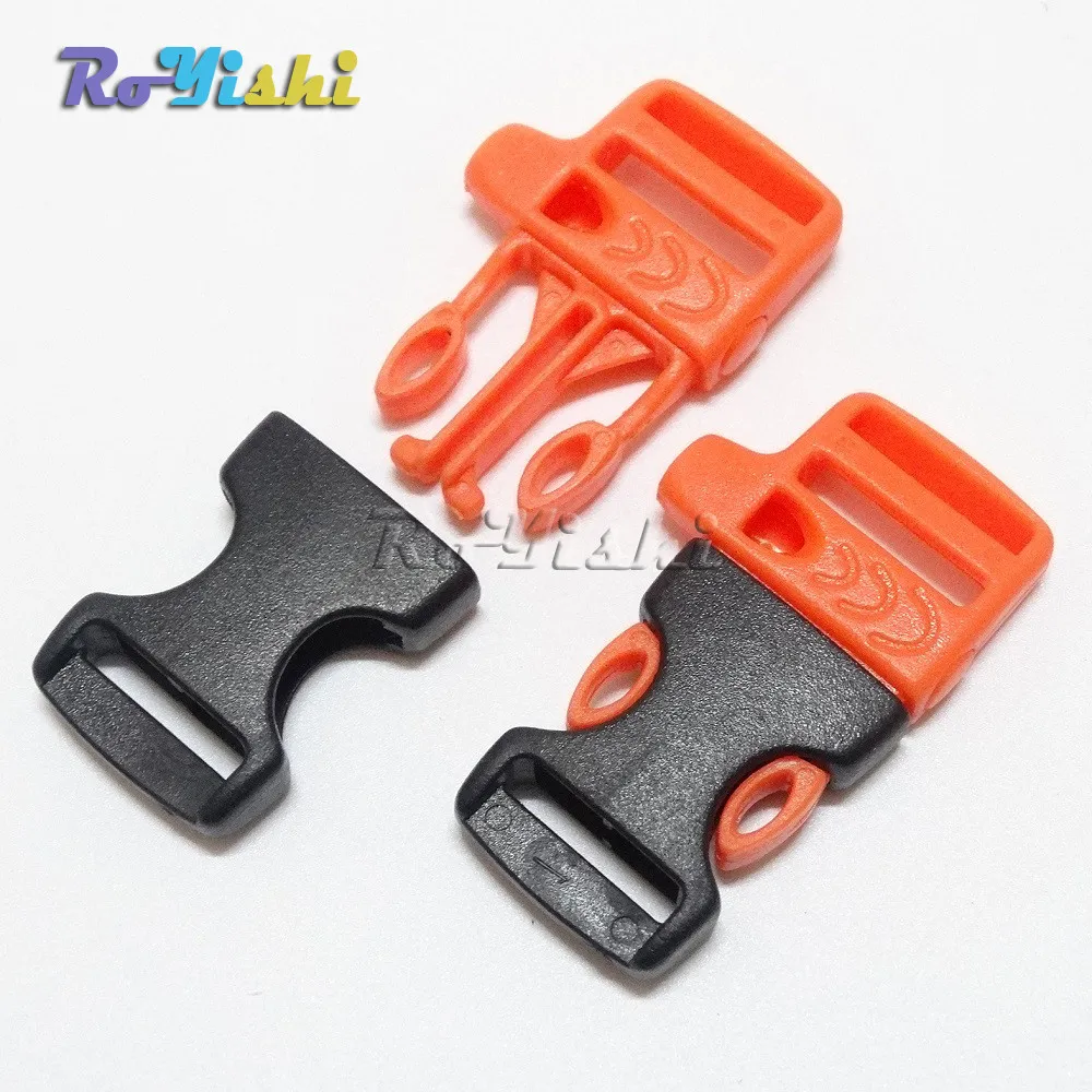 Hebillas de silbato de liberación lateral de emergencia de 5/8 "(15 mm) para pulsera de Paracord naranja + negro
